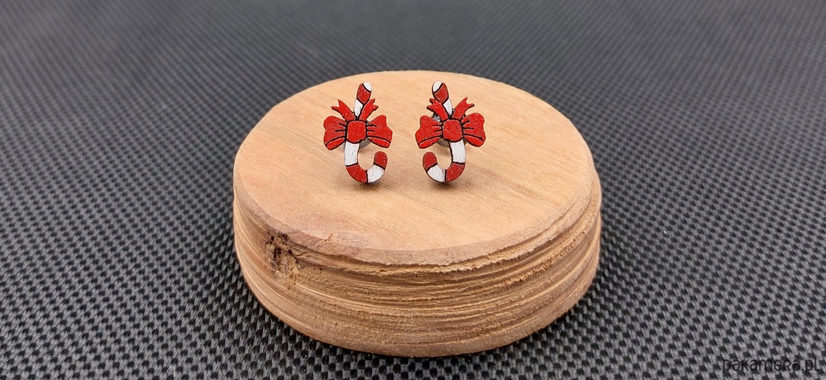 Kolczyki drewniane ŚWIĄTECZNE LASKI CUKROWE