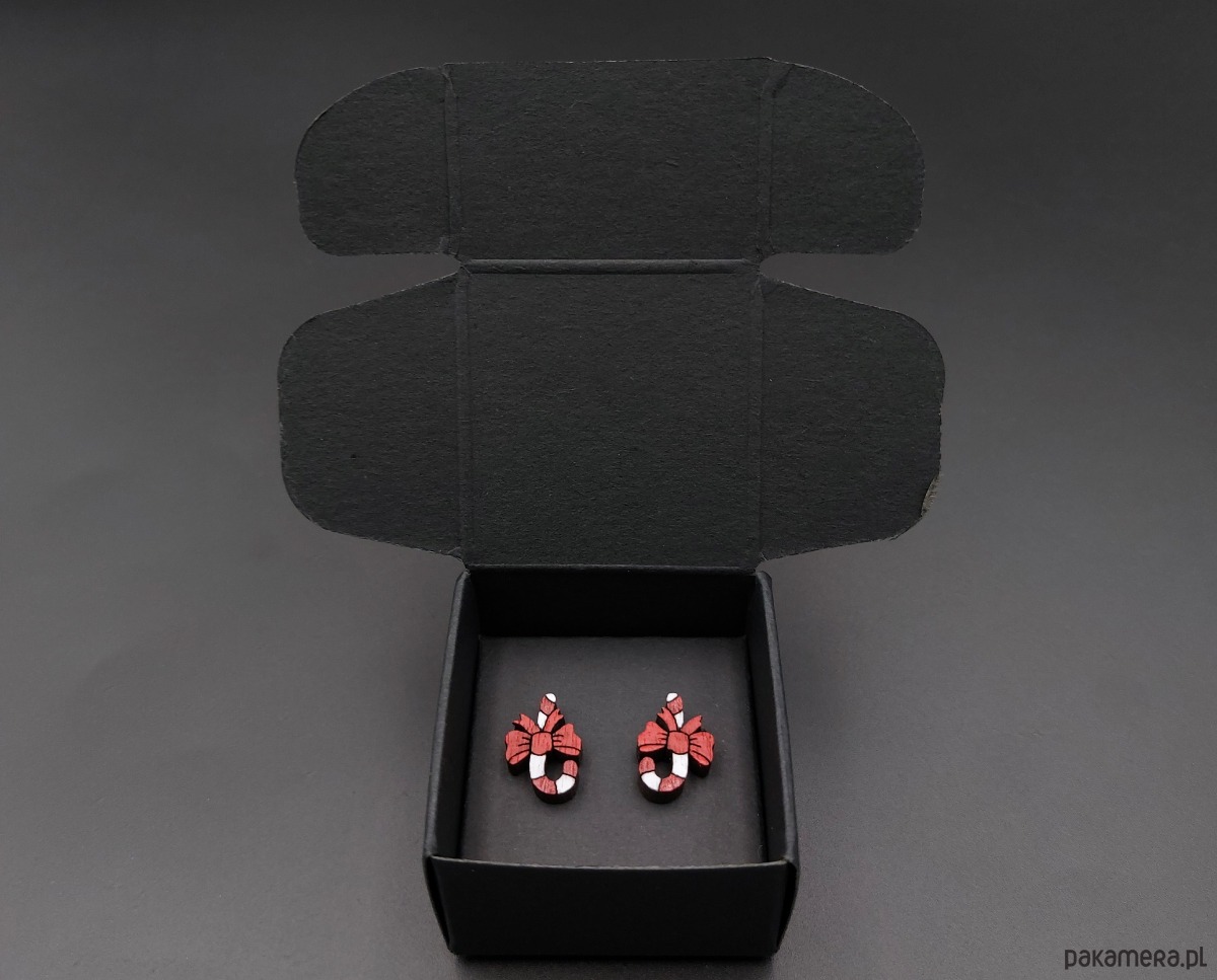 Kolczyki pakuję w kartonowe pudełeczko widoczne na zdjęciu.
