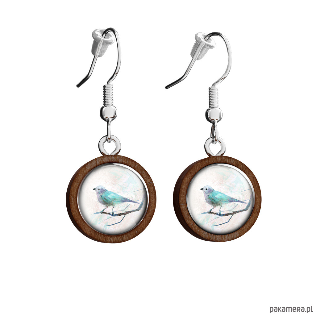 Kolczyki drewniane - Turkusowy ptak - wiszące