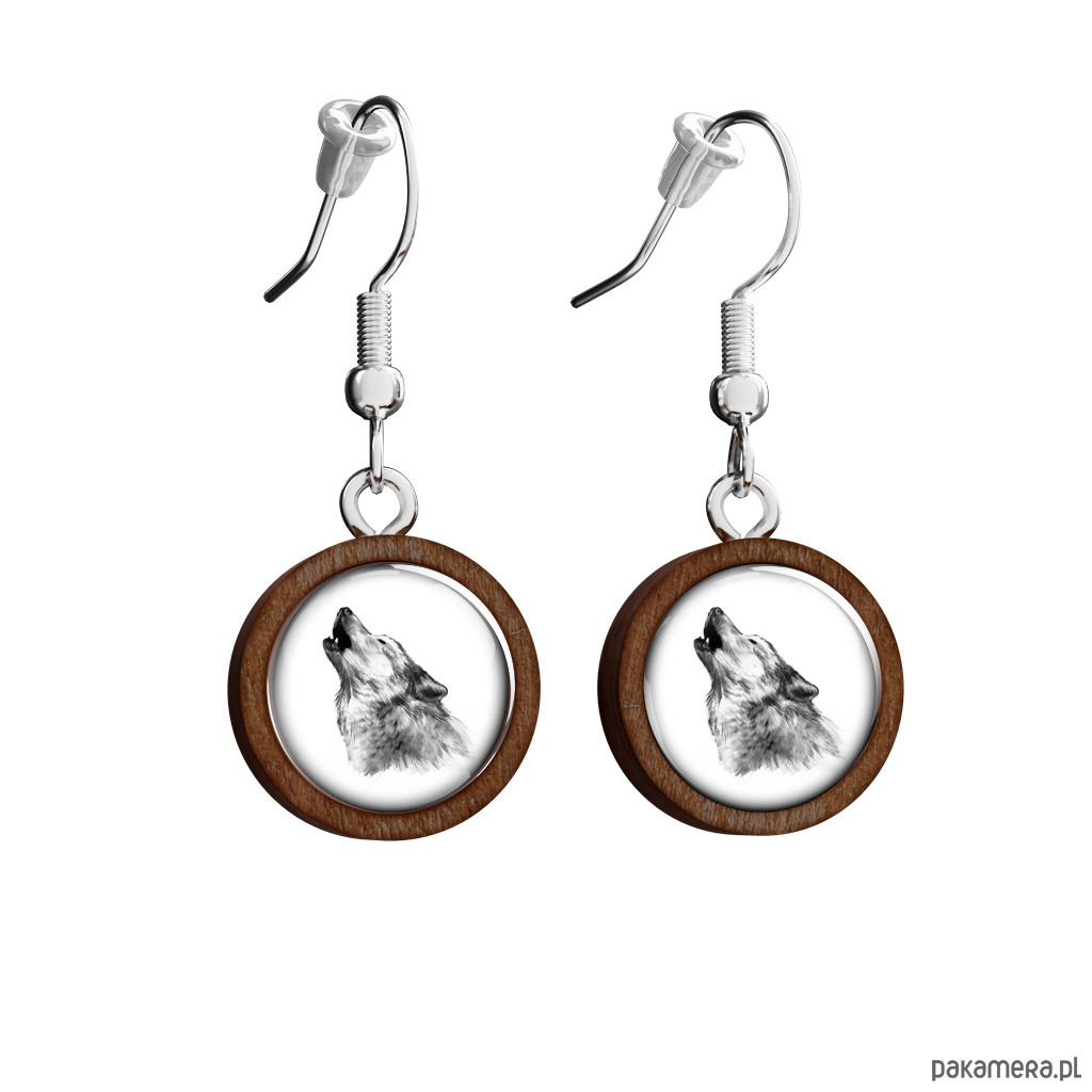 Kolczyki drewniane - Wilk - wiszące