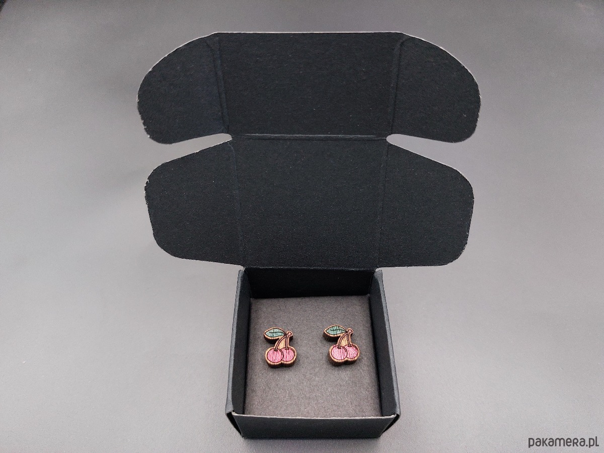 Kolczyki pakuję w kartonowe pudełeczko widoczne na zdjęciu.