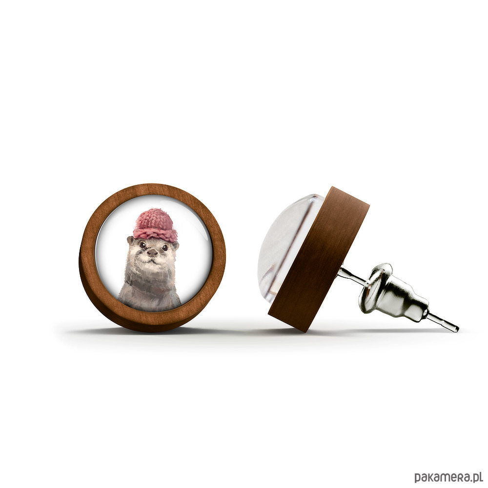 Kolczyki drewniane - Wydra - sztyfty