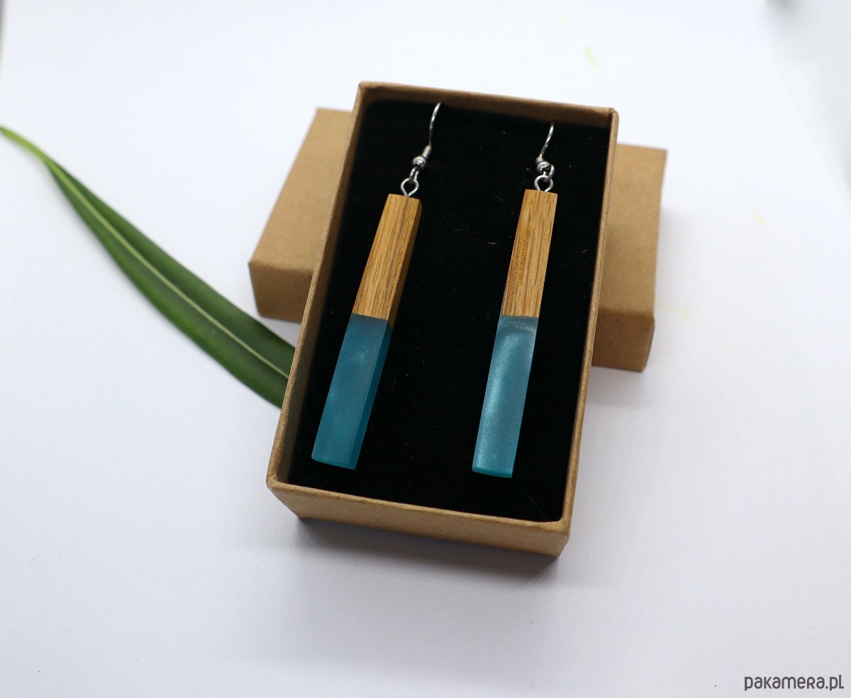 Lekkie, drewniane kolczyki z żywicą epoksydową o prostym, ale klasycznym kształcie, Tworzą unikalny dodatek do twojej stylizacji na każdą okazje.