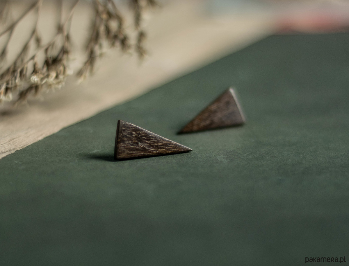 Małe, drewniane kolczyki sztyfty wykonane z hebanu