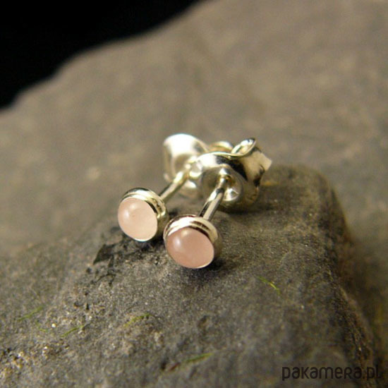 Kolczyki Drobinki - Kwarc Różowy Srebro 3mm