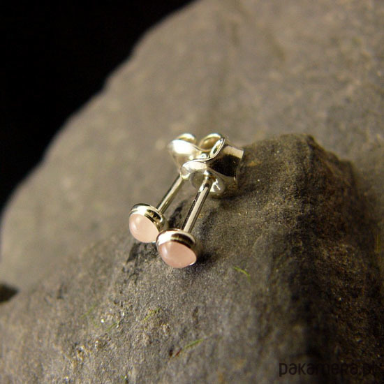Delikatne maluteńkie kolczyki sztyfty wykonane ręcznie ze srebra próby 925 oraz przepięknych naturnych Różowych Kwarcy. Kolczyki mają średnicę 3,5 milimetra, Kamień w nich 3 mm. Kwarc różowy jest kamieniem serca i miłości. Kwarc emanuje czystą bezwarunkową miłością. Jest to kompas dla serca. Nehesi