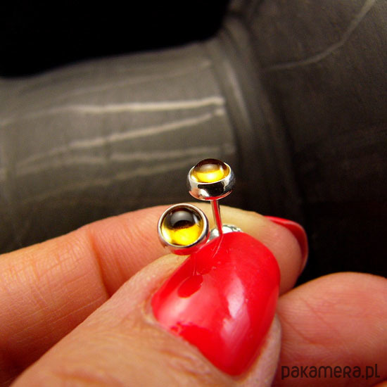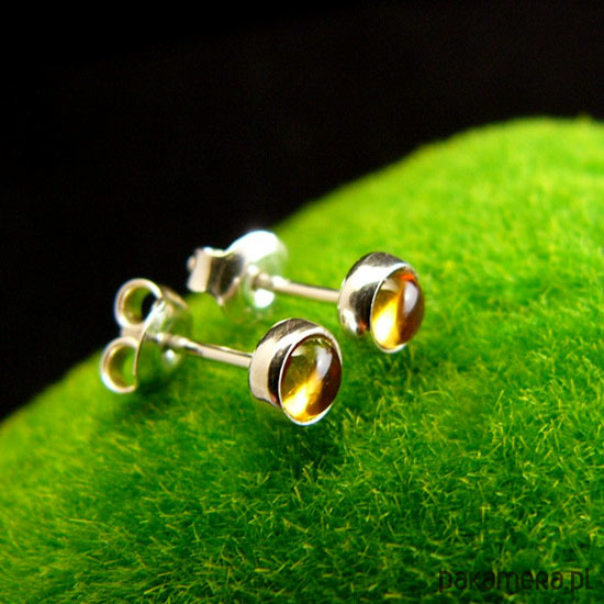 Delikatne niewielkie kolczyki sztyfty wykonane ręcznie ze srebra próby 925 oraz przepięknych naturalnych Cytrynów. Kolczyki mają średnicę 3,5 milimetra. Nehesi