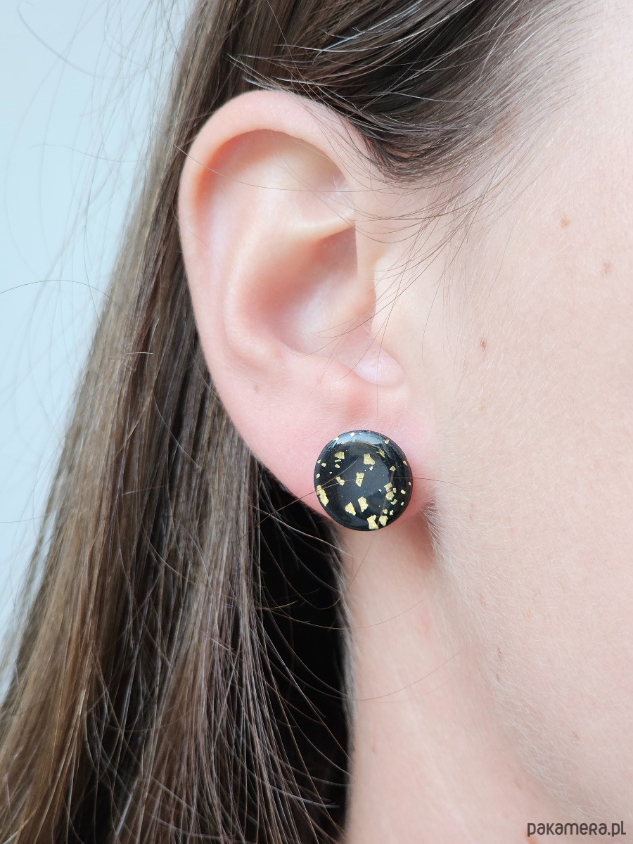 Leciutkie kolczyki z glinki polimerowej, sztyfty i zatyczki ze stali chirurgicznej.