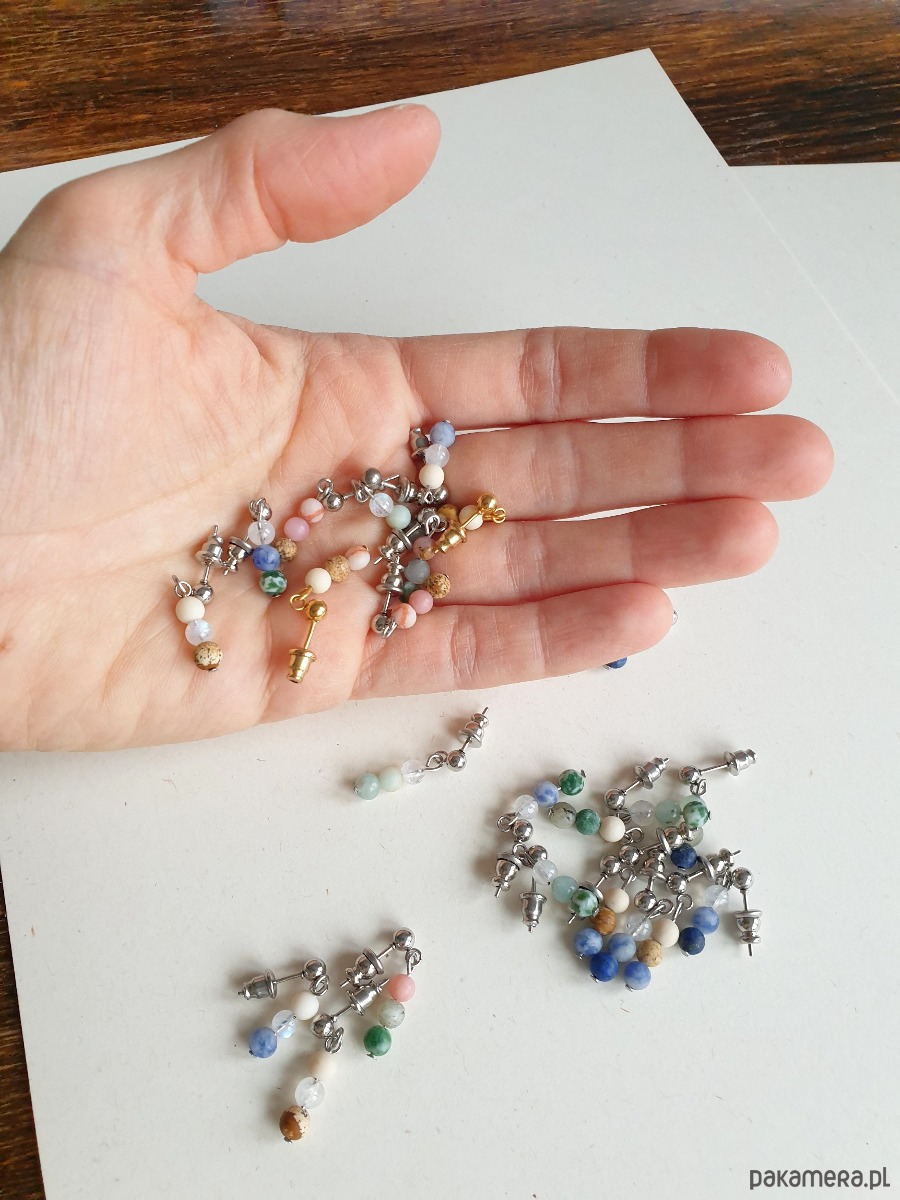 Drobne kolczyki z kolekcji DROPSY MINI z kamieniami, idealne na wieczorne wyjście ale też na co dzień. Pasują do bransoletek dostępnych w naszym sklepie. Na zdjęciu przykładowa para, kolczyki które kupujesz będą się minimalnie różnić bo każdy kamień jest wyjątkowy.