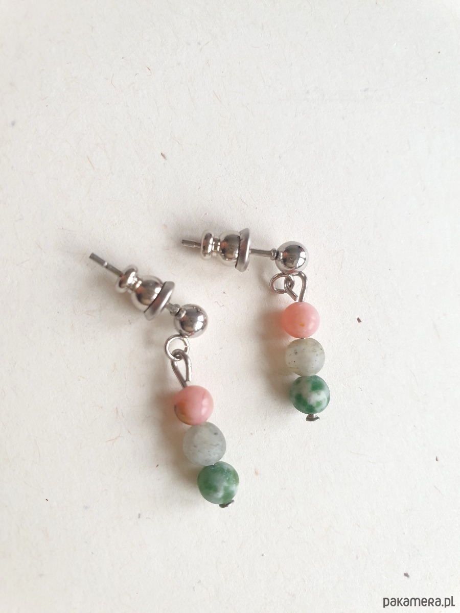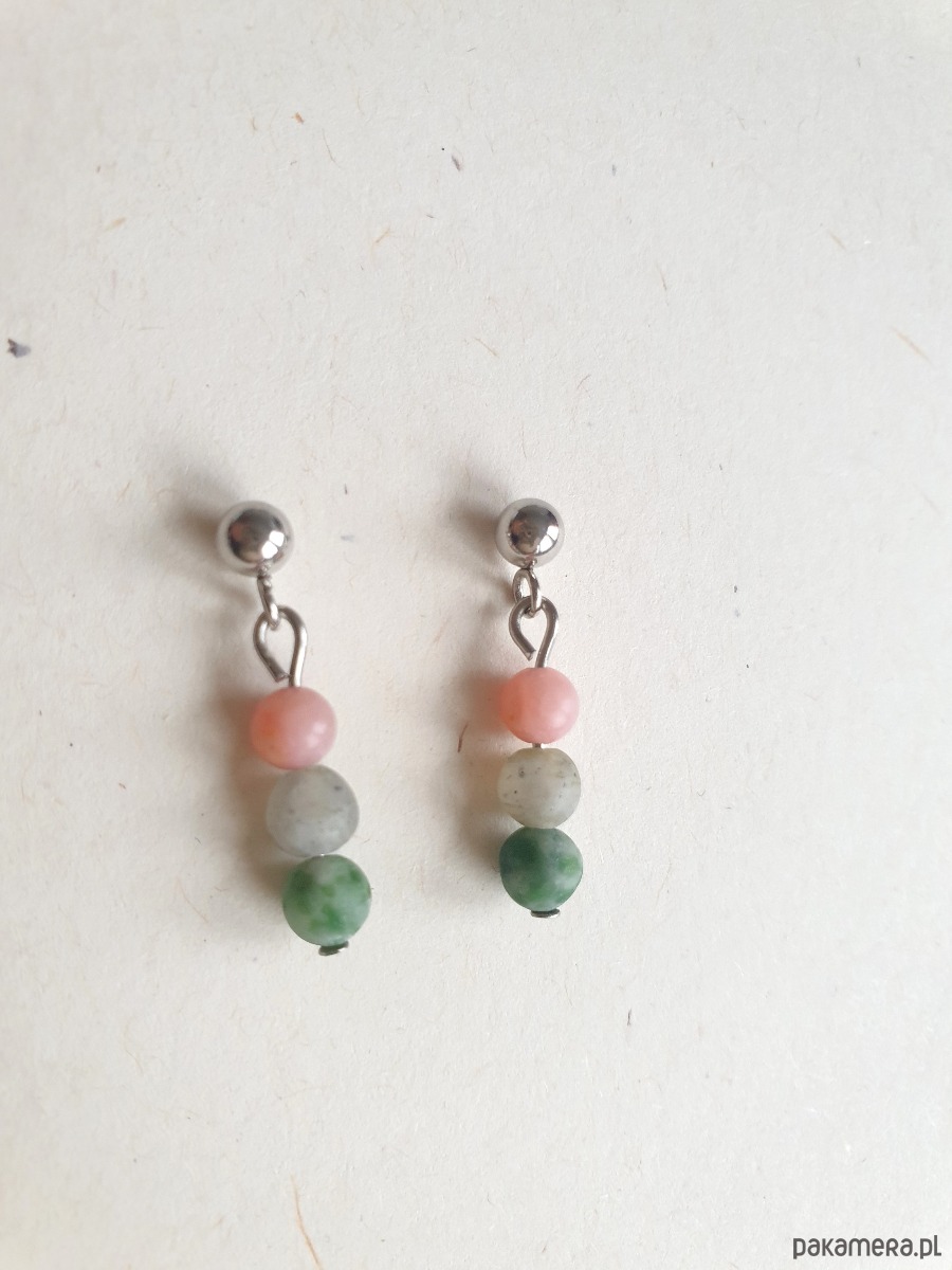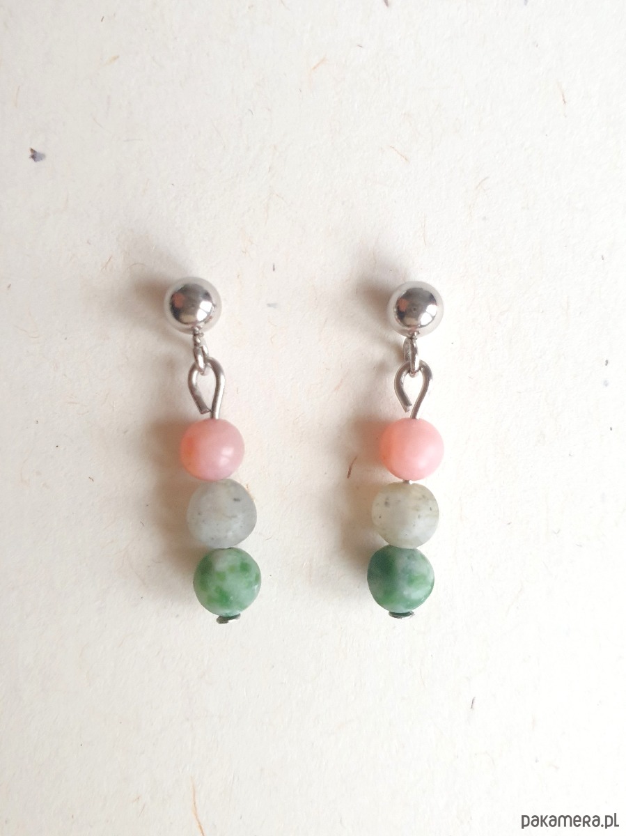Kolczyki DROPSY MINI labradoryt, jaspis zielony,opal różowy