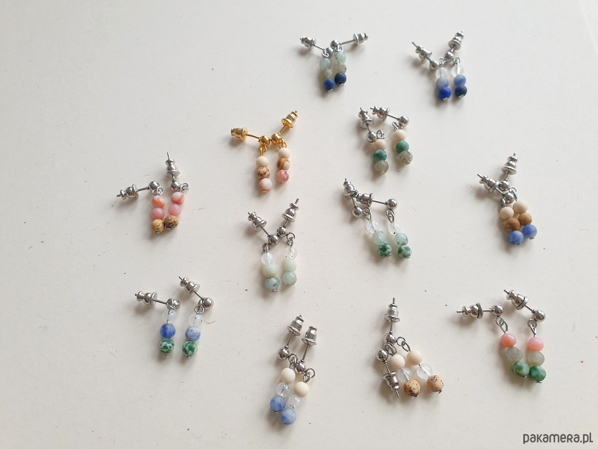 Drobne kolczyki z kolekcji DROPSY MINI z kamieniami, idealne na wieczorne wyjście ale też na co dzień. Pasują do bransoletek dostępnych w naszym sklepie. Na zdjęciu przykładowa para, kolczyki które kupujesz będą się minimalnie różnić bo każdy kamień jest wyjątkowy.