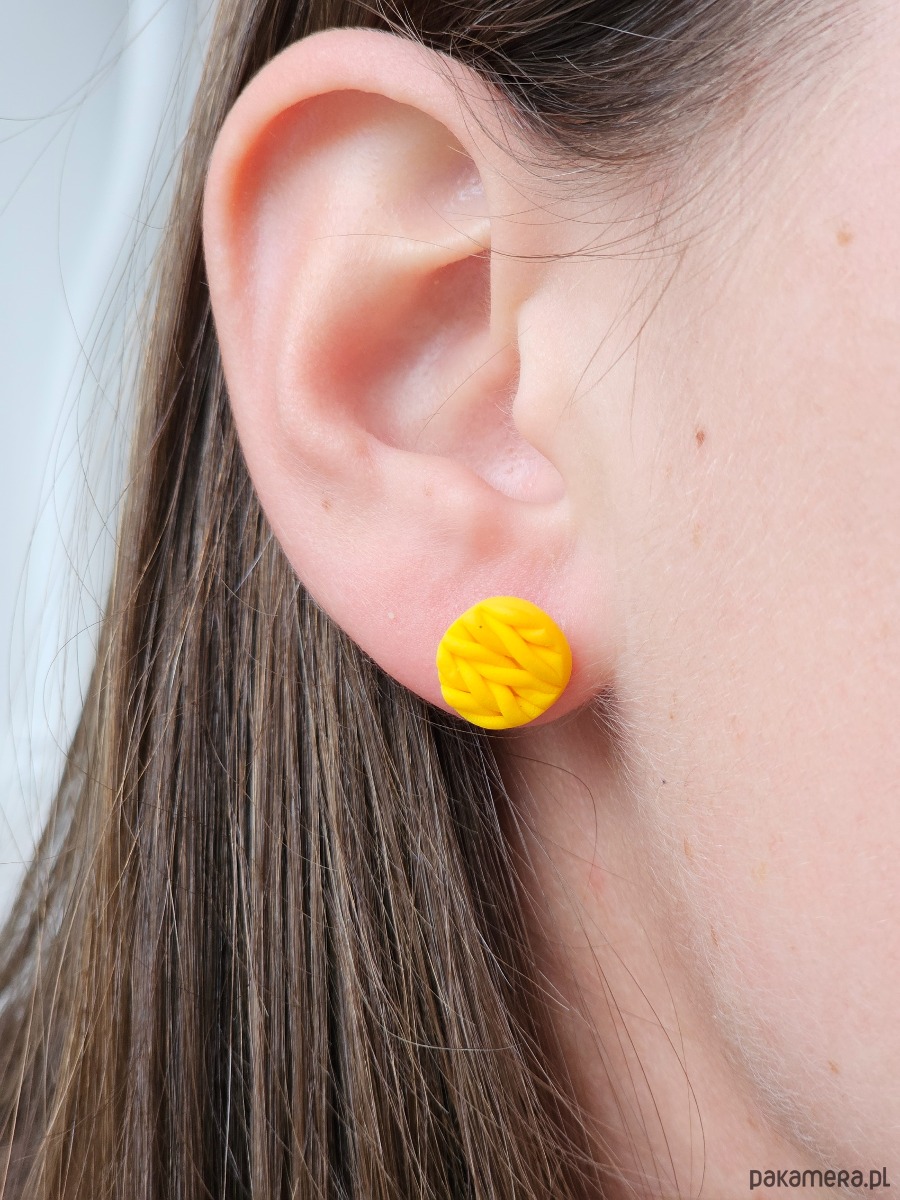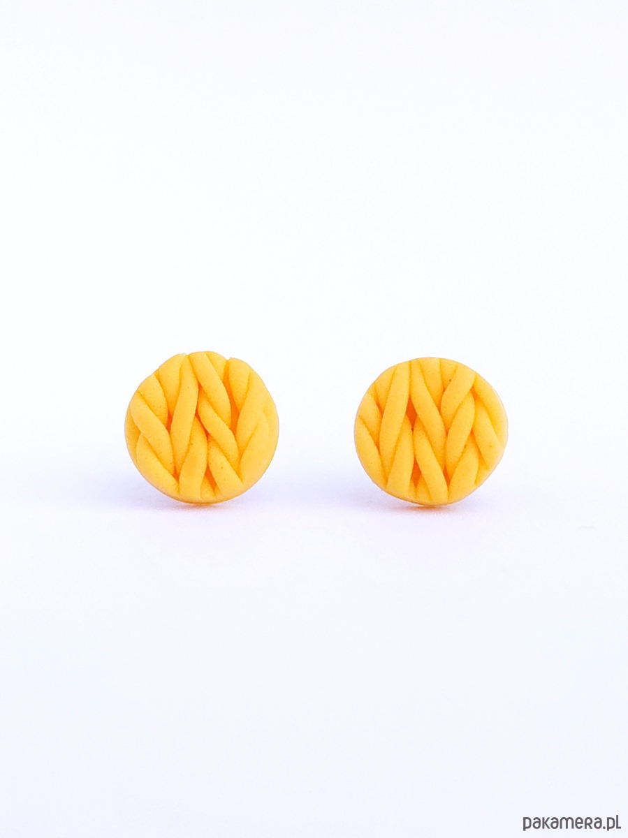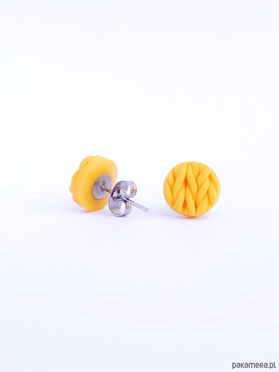 Leciutkie kolczyki z glinki polimerowej, sztyfty i zatyczki ze stali chirurgicznej.