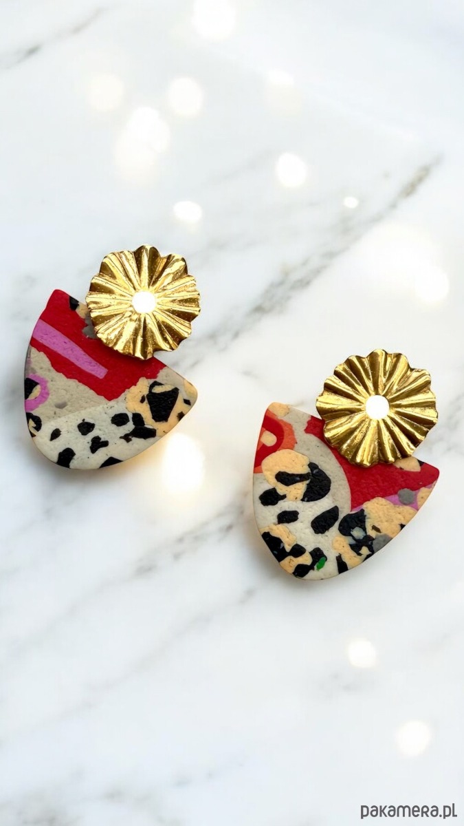 Oryginalne kolczyki wykonane ręcznie z dbałością o szczegóły z profesjonalnej glinki polimerowej, wypalane w piecu i szlifowane w domowej pracowni. Każda para kolczyków jest niepowtarzalna i wyjątkowa. Kolczyki są bardzo lekkie i wygodne, nie obciążają płatka ucha i przyciągają spojrzenia. Zapinane na sztyft ze stali chirurgicznej.