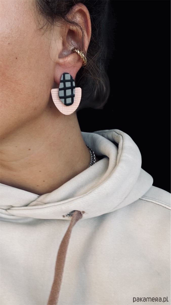Oryginalne kolczyki wykonane ręcznie z dbałością o szczegóły z profesjonalnej glinki polimerowej, wypalane w piecu i szlifowane w domowej pracowni. Każda para kolczyków jest niepowtarzalna i wyjątkowa. Kolczyki są bardzo lekkie i wygodne, nie obciążają płatka ucha i przyciągają spojrzenia. Zapinane na sztyft ze stali chirurgicznej.