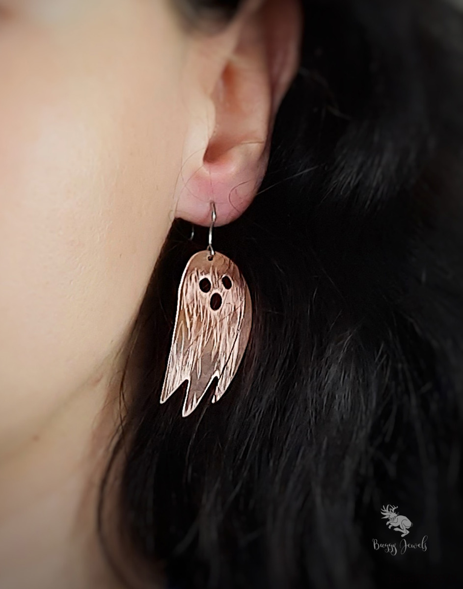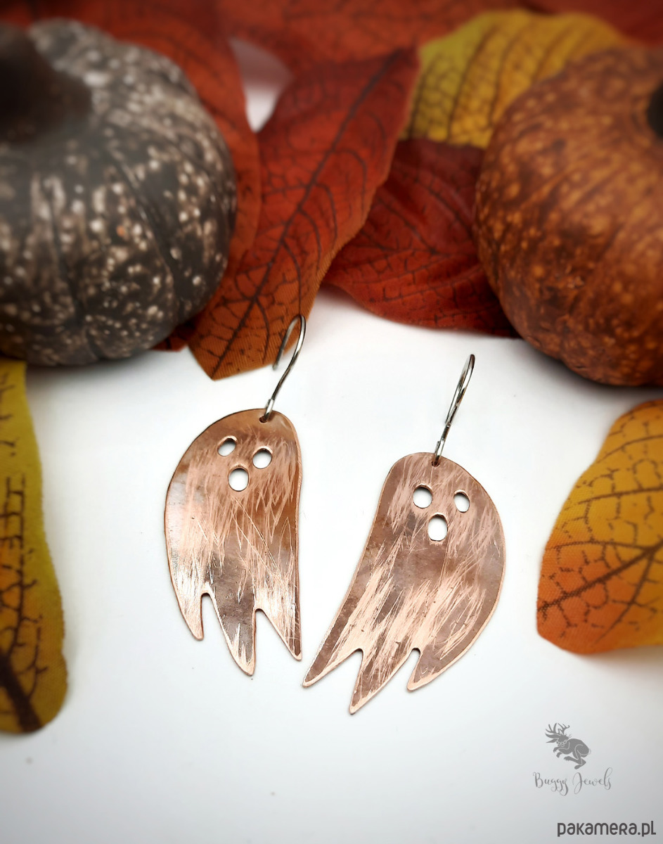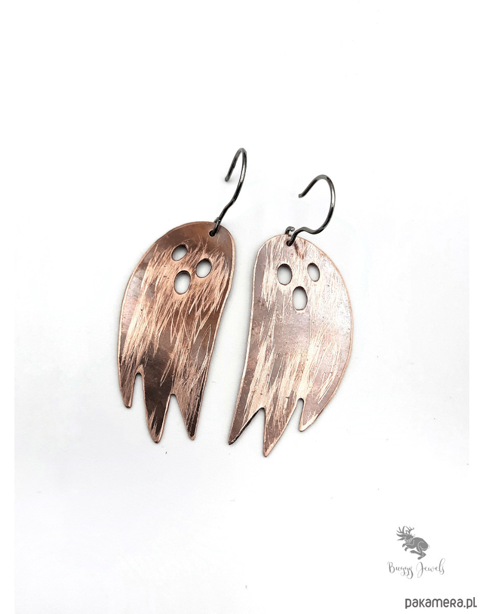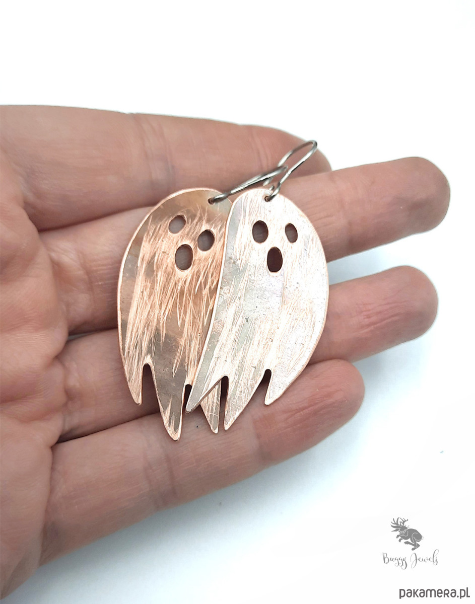 Kolczyki handmade wykonane w całości ręcznie z miedzianej blaszki, która poddana została zabiegowi patynowania i satynowania.
