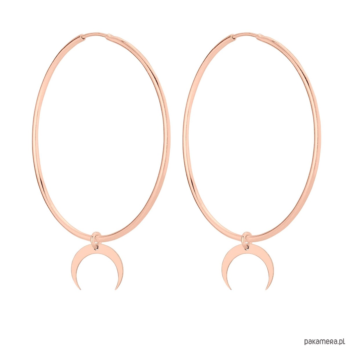 Złote kolczyki duże koła z księżycami. Całość wykonana ze srebra 925 powlekanego 18 karatowym różowym złotem.