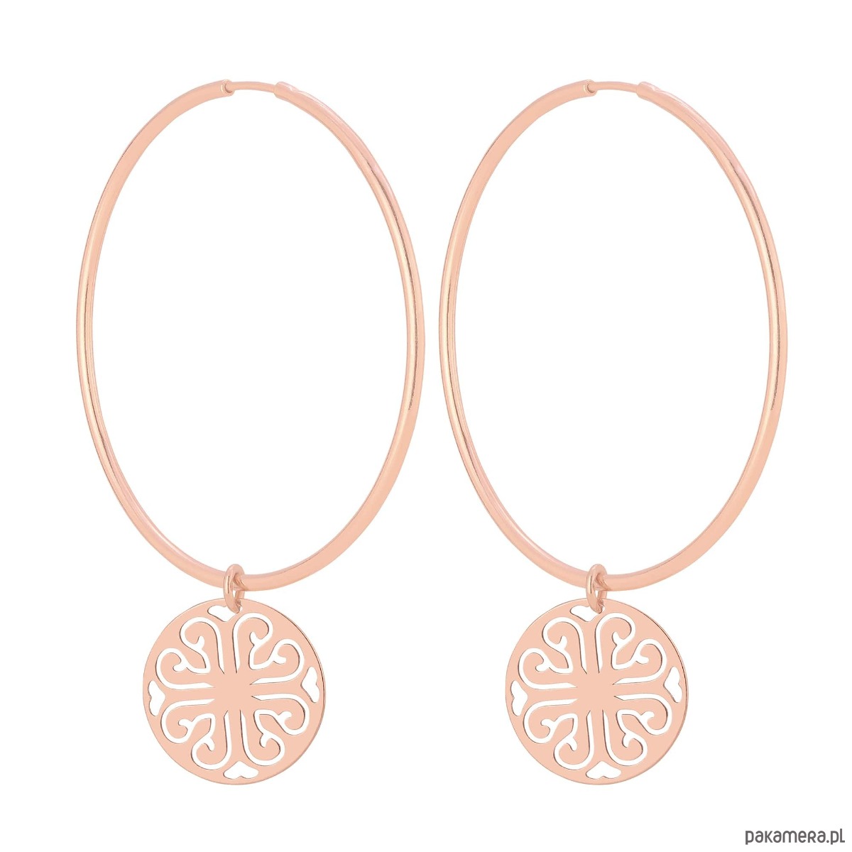 Złote kolczyki duże koła z rozetami. Całość wykonana ze srebra 925 powlekanego 18 karatowym różowym złotem.