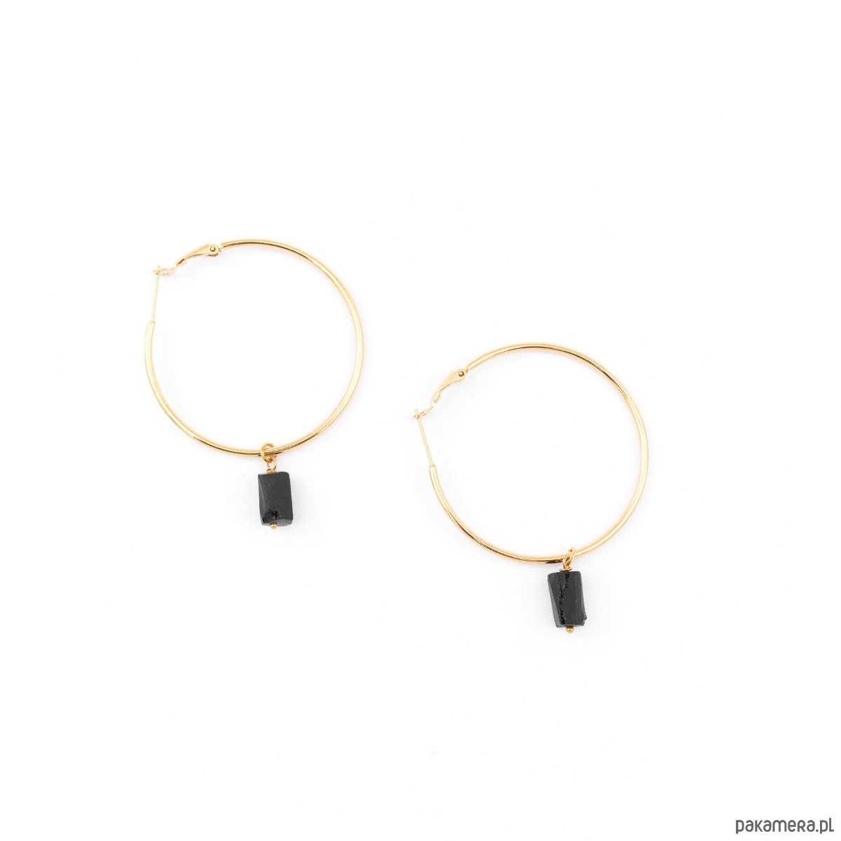 Poznaj naszą nowość! Pozłacane kolczyki duże koła z surową bryłą czarnego Turmalinu.Turmalin to kamień ochrony. Jest wyjątkowym kamieniem, który zapewnia ochronę przed tzw. „złym okiem” czyli zazdrością, szkodliwymi intencjami oraz innymi rodzajami negatywnych wpływów takich jak obawy, strach, złość.