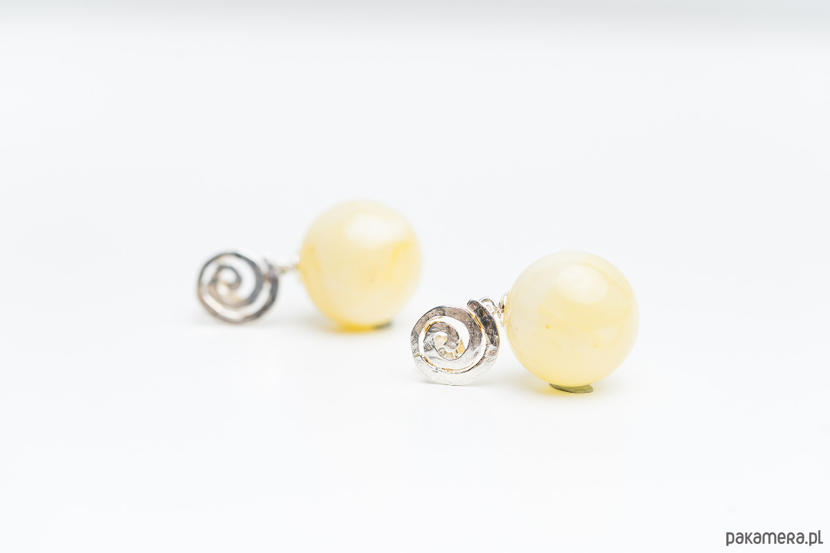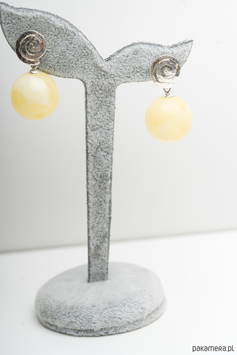 Kolczyki duże kule wiszące bursztyn bałtycki mleczny