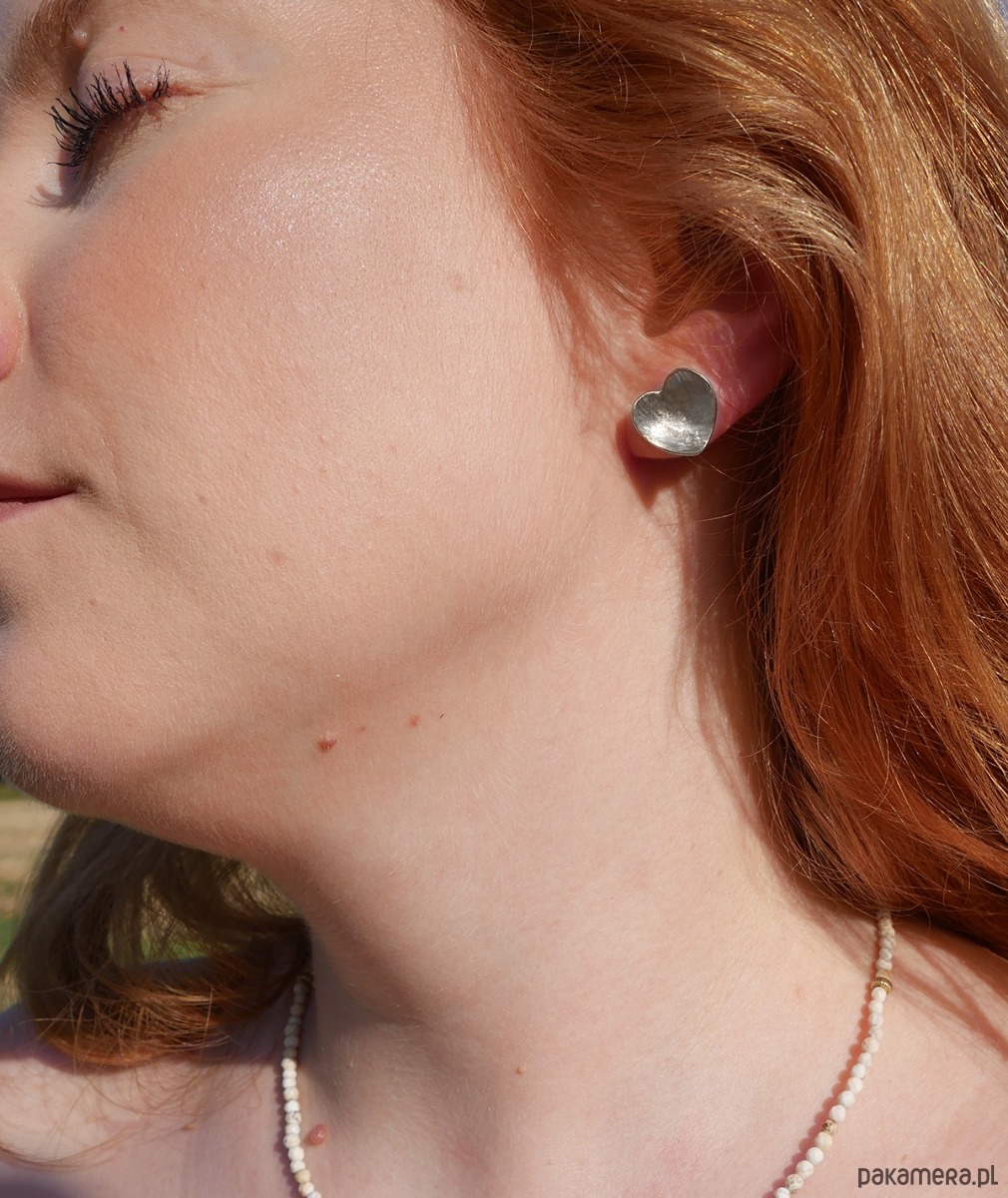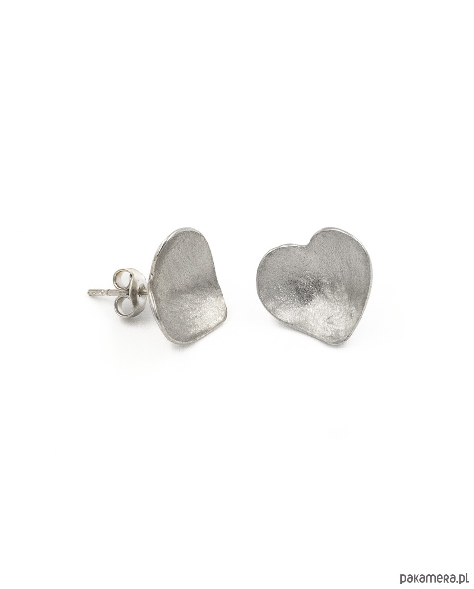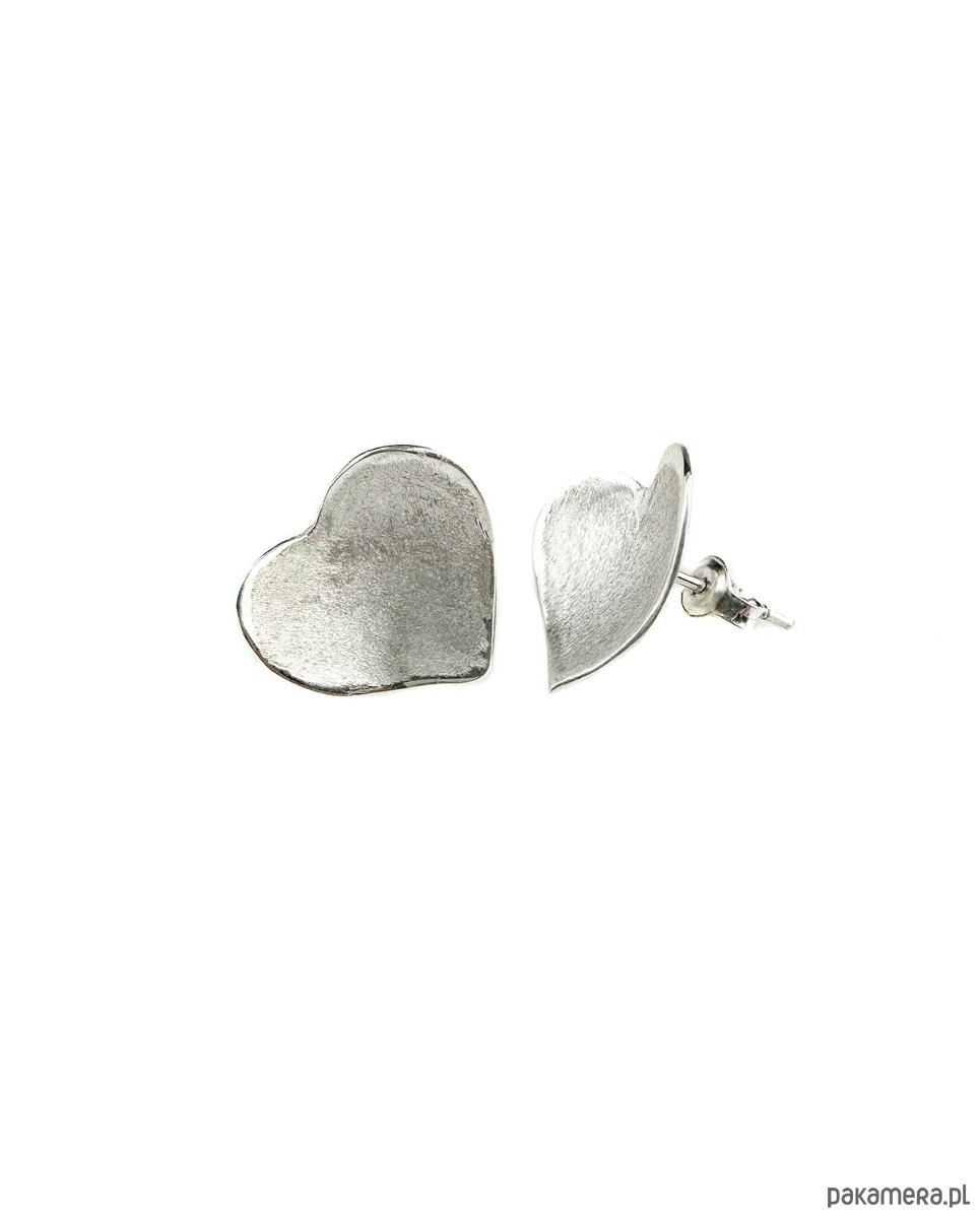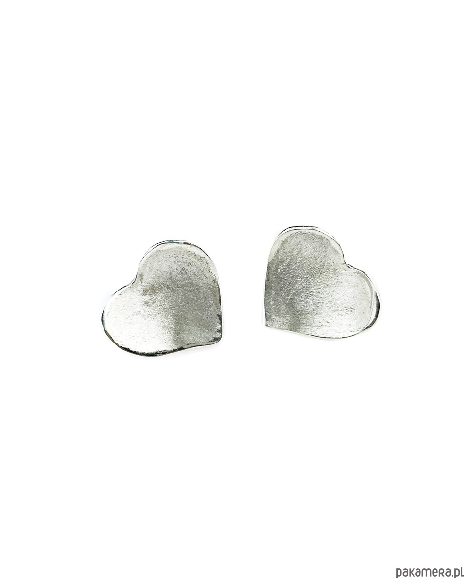 Kolczyki sztyfty, duże serduszka wewnątrz satynowane. Wykonane ręcznie ze srebra 925.