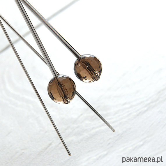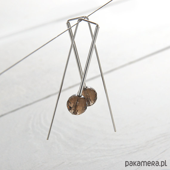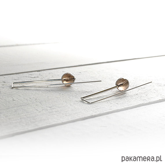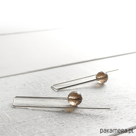Geometryczne, minimalistyczne kolczyki wykonane ze srebra i dymnych kwarców.