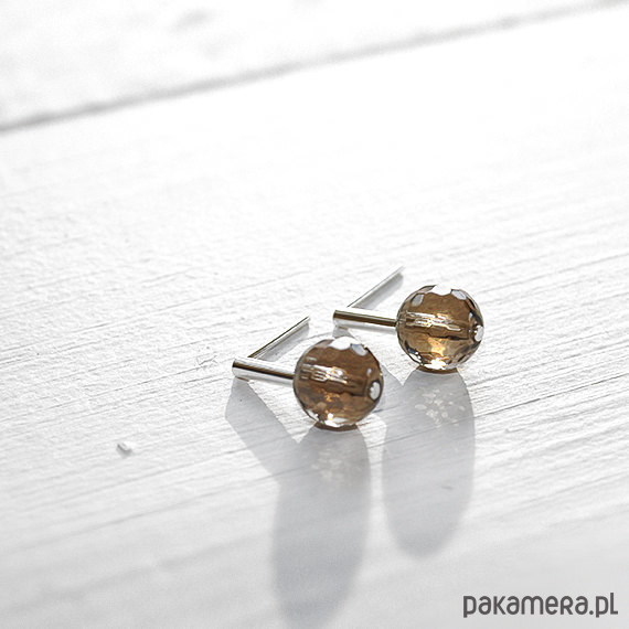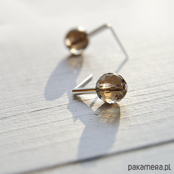 Delikatne, minimalistyczne kolczyki wykonane ze srebra i dymnych kwarców.