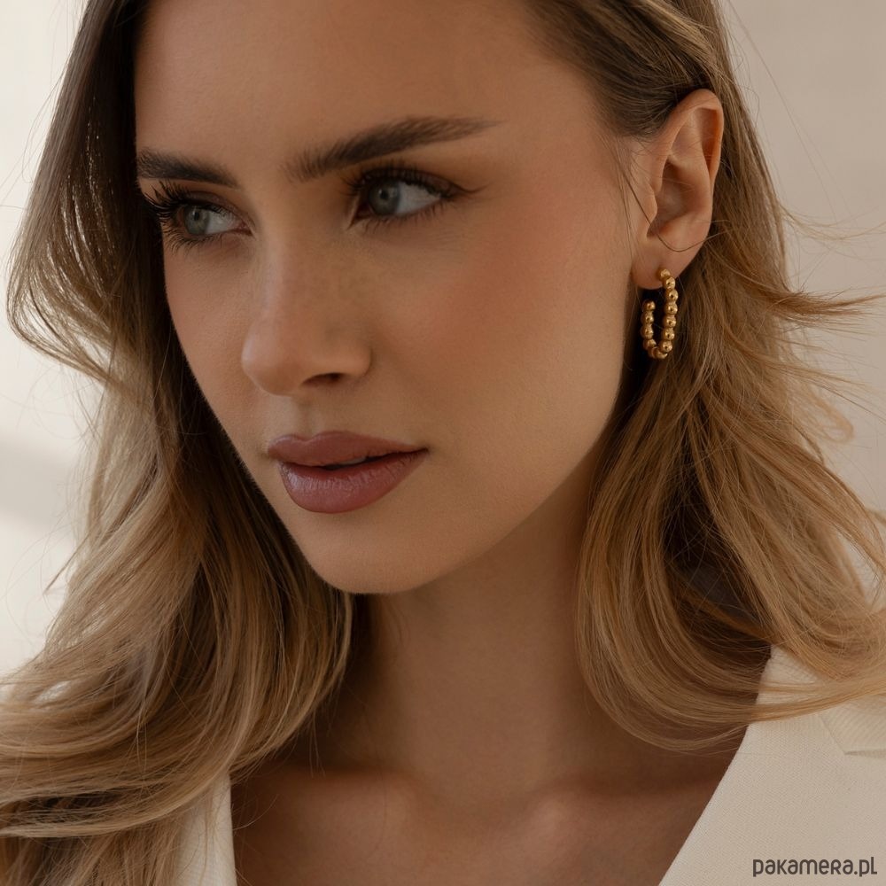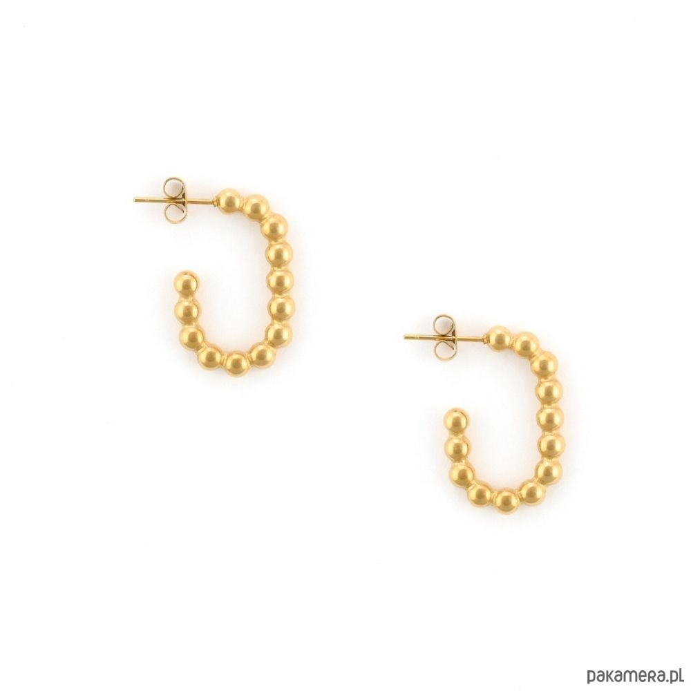Złote kulki tworzą delikatną elipsę, która pięknie podkreśla rysy twarzy i dodaje całości subtelnego blasku. To doskonały wybór dla kobiet ceniących minimalizm, nowoczesny szyk i biżuterię, która pasuje na każdą okazję.Kolczyki wykonane są z antyalergicznej stali szlachetnej pozłacanej, która nie uczula. Bez obaw, pozłocenie pięknie się utrzymuje, nie ciemnieje i nie wyciera.