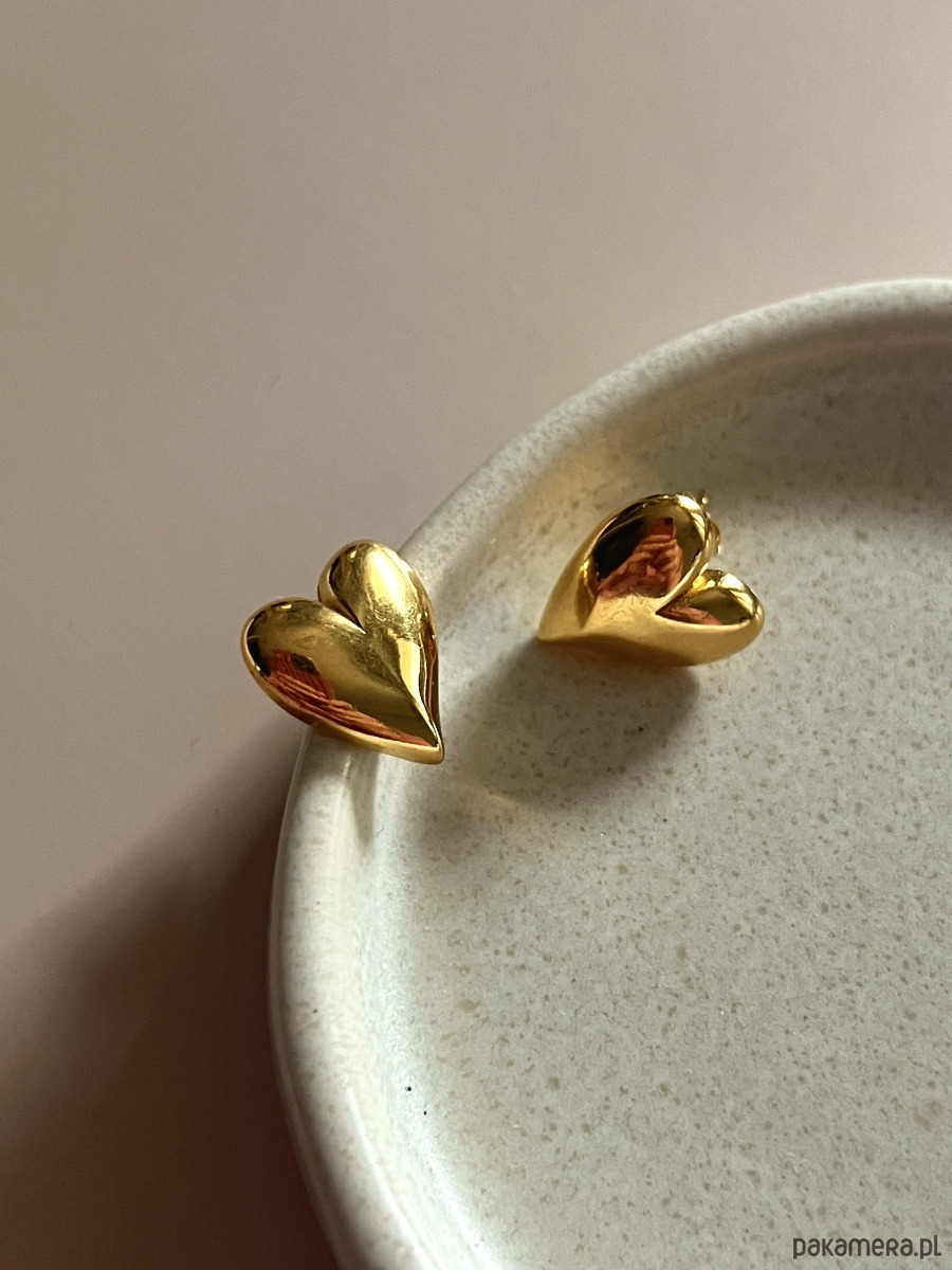 Kolczyki Elora wypukłe serca sztyfty srebro pozłacane