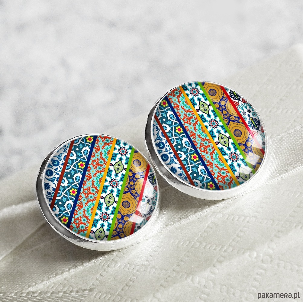 Śliczne kolorowe kolczyki na sztyfcie, tak zwane wkrętki, z oryginalną grafiką zatopioną pod wypukłym szkiełkiem, w oprawie w kolorze srebra. Grafika jest najwyższej jakości, wywołana na papierze fotograficznym, dokładnie odzwierciedla szczegóły. Szkła z grafiką są unikatowe, wykonane ręcznie według mojego projektu, z dbałością o każdy detal, dzięki czemu biżuteria ta jest jedyna w swoim rodzaju i niespotykana. Kolczyki hipoalergiczne, nie zawierają niklu i ołowiu.