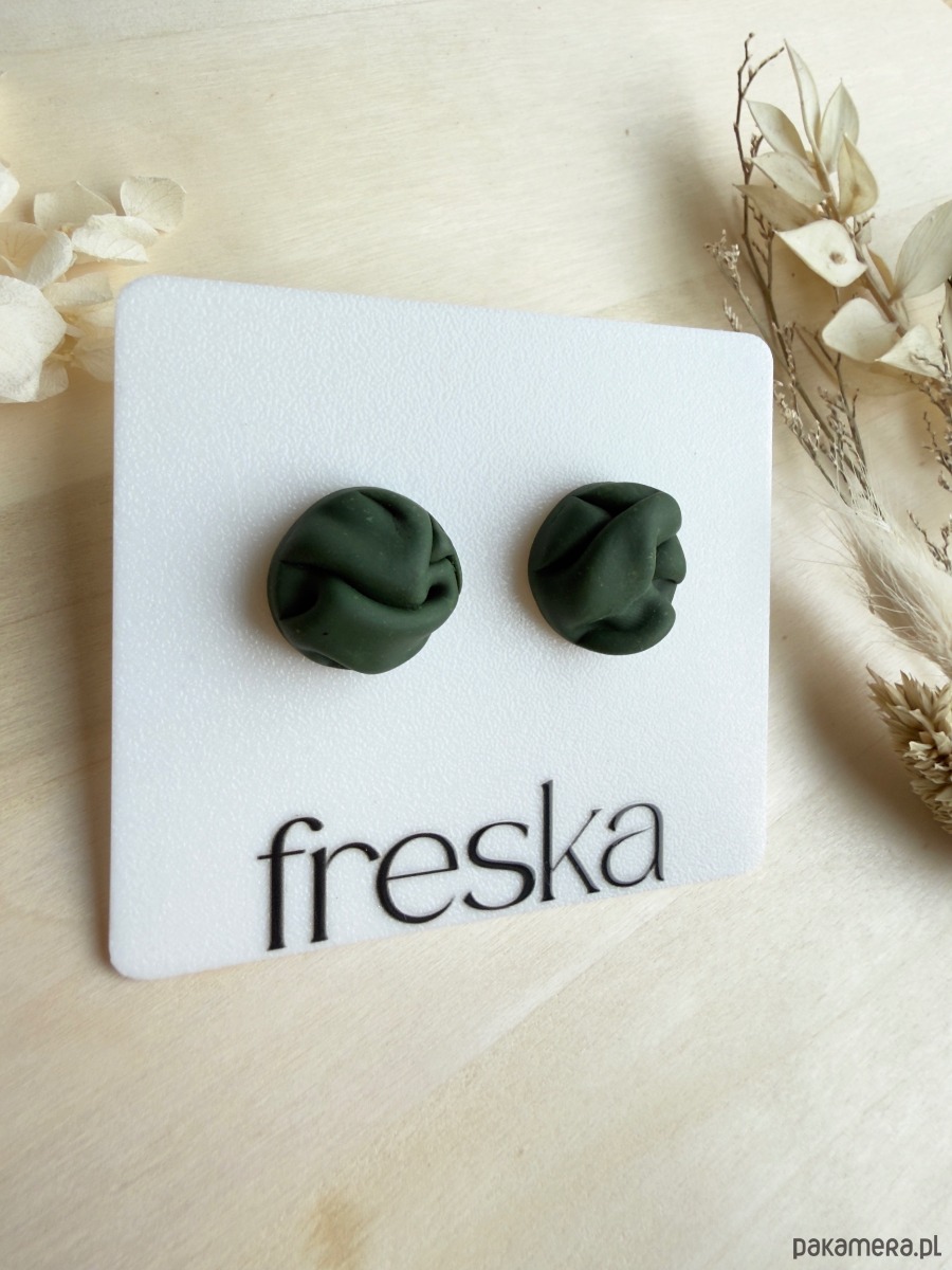Wprowadź się w spokojny, naturalny nastrój dzięki kolczykom, które wyglądają jak maleńkie, zawinięte fragmenty materiału. Delikatne fałdowania nadają im nowoczesny, rzeźbiarski charakter, a matowa zieleń świetnie komponuje się z codziennymi i bardziej eleganckimi stylizacjami. Kolczyki zostały wykonane z wysokiej jakości gliny polimerowej, a ich sztyfty i baranki są ze stali chirurgicznej, co zapewnia lekkość, trwałość i komfort noszenia przez cały dzień.