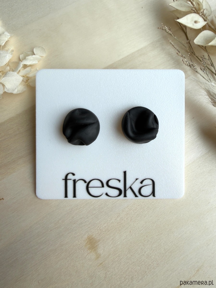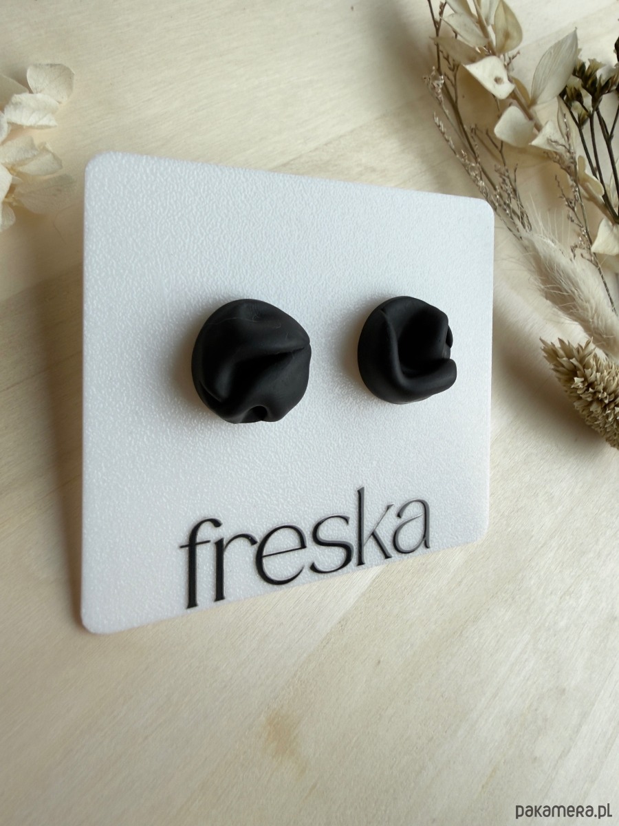Wprowadź się w spokojny, naturalny nastrój dzięki kolczykom, które wyglądają jak maleńkie, zawinięte fragmenty materiału. Delikatne fałdowania nadają im nowoczesny, rzeźbiarski charakter, a matowa głęboka czerń świetnie komponuje się z codziennymi i bardziej eleganckimi stylizacjami. Kolczyki zostały wykonane z wysokiej jakości gliny polimerowej, a ich sztyfty i baranki są ze stali chirurgicznej, co zapewnia lekkość, trwałość i komfort noszenia przez cały dzień.