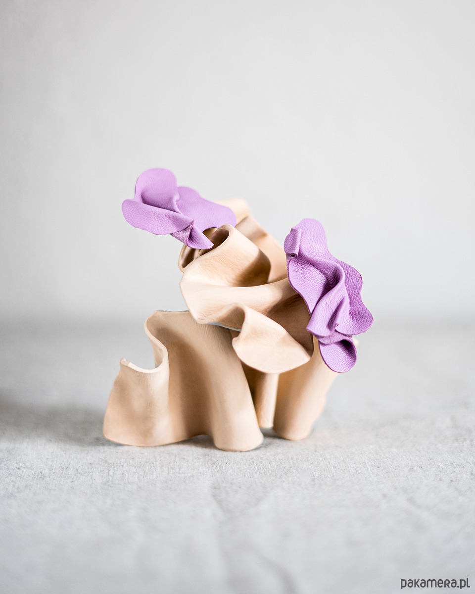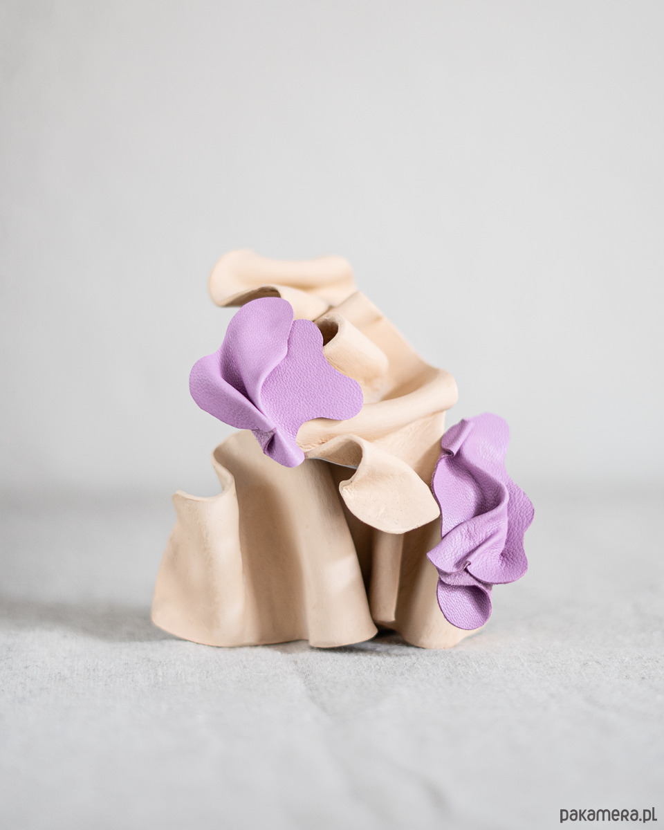 Kolczyki z kolekcji FAŁDA powstały ze ścinków skór naturalnych w duchu zero waste.