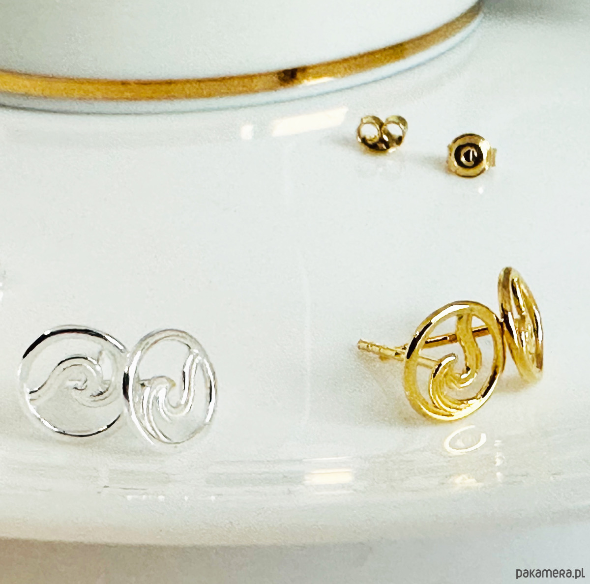 Kolczyki fale, sztyfty fala