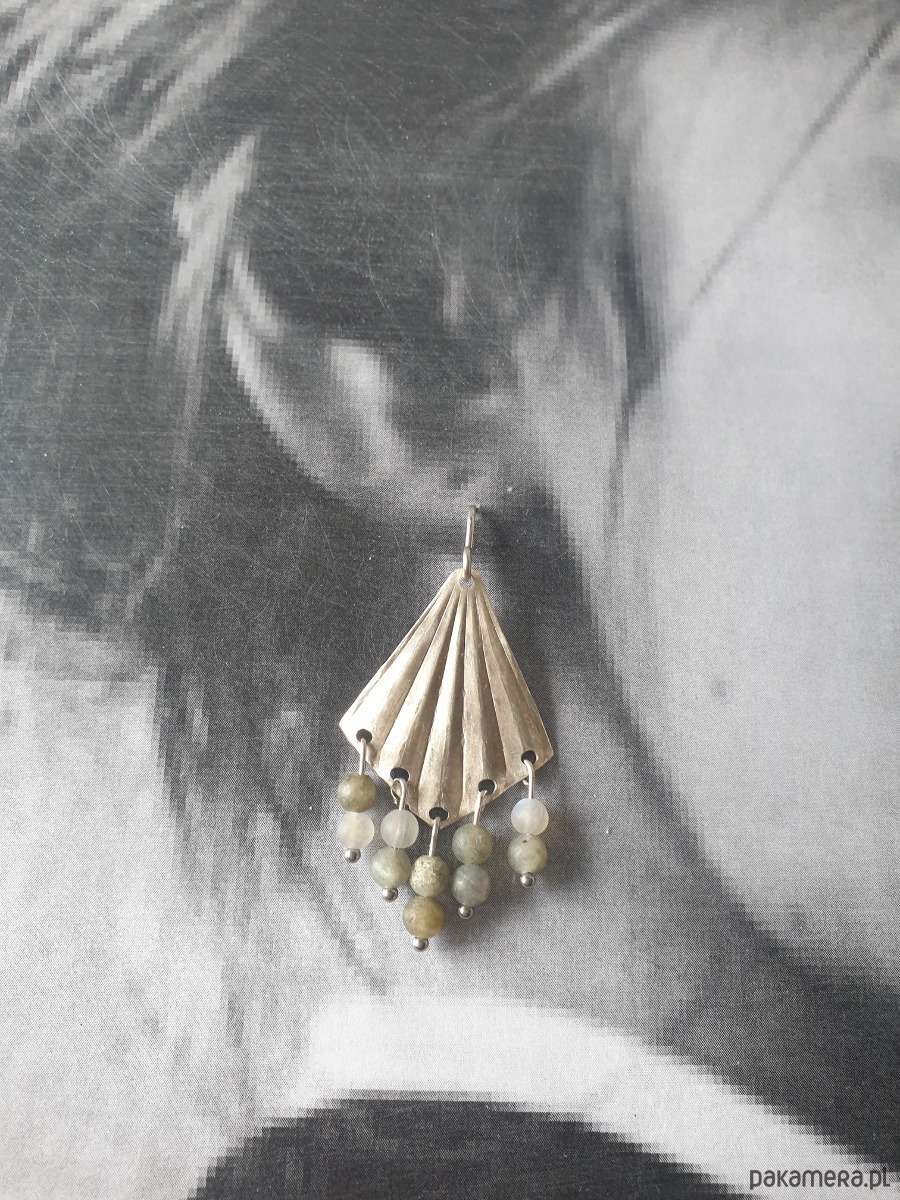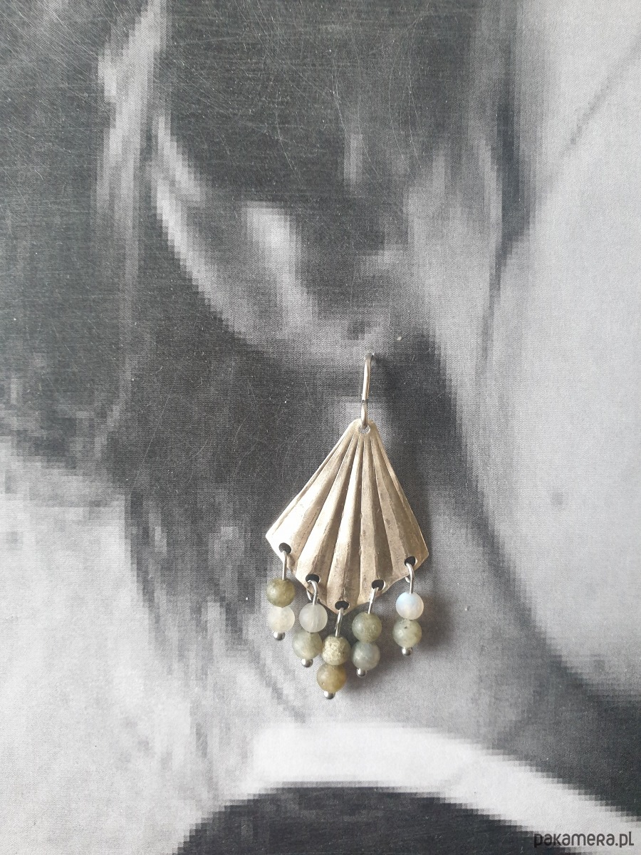 Kolczyki FAN wachlarze z labradorytem, mosiądz posrebrzany