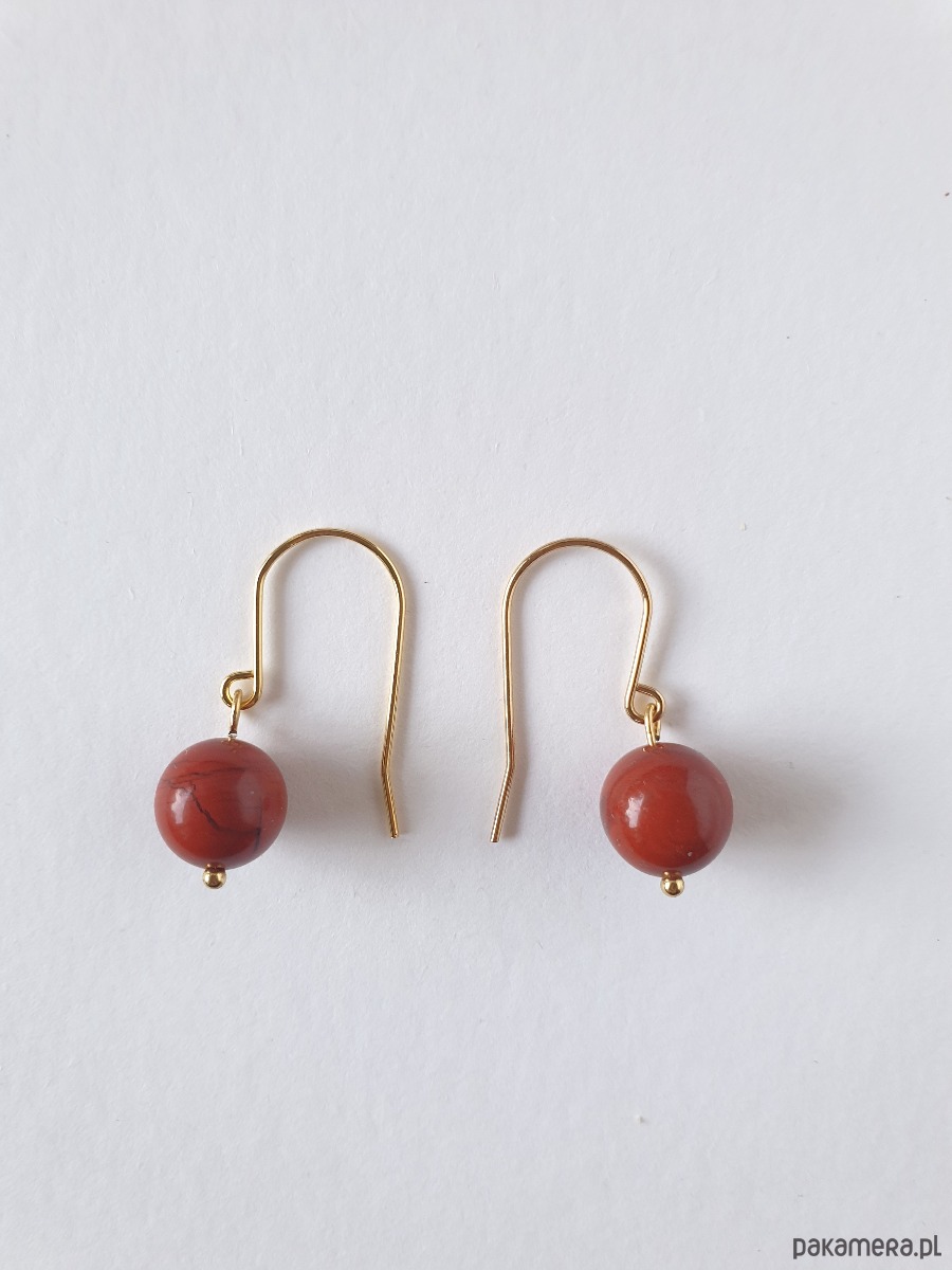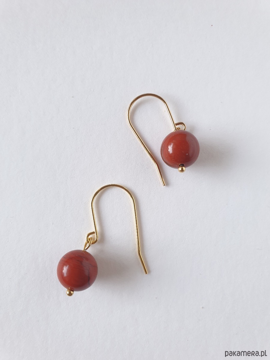 Eleganckie kolczyki z kolekcji FANABERIA w duchu minimalizmu, z kulkami jaspis czerwony, idealne na wieczorne wyjście ale też na co dzień.