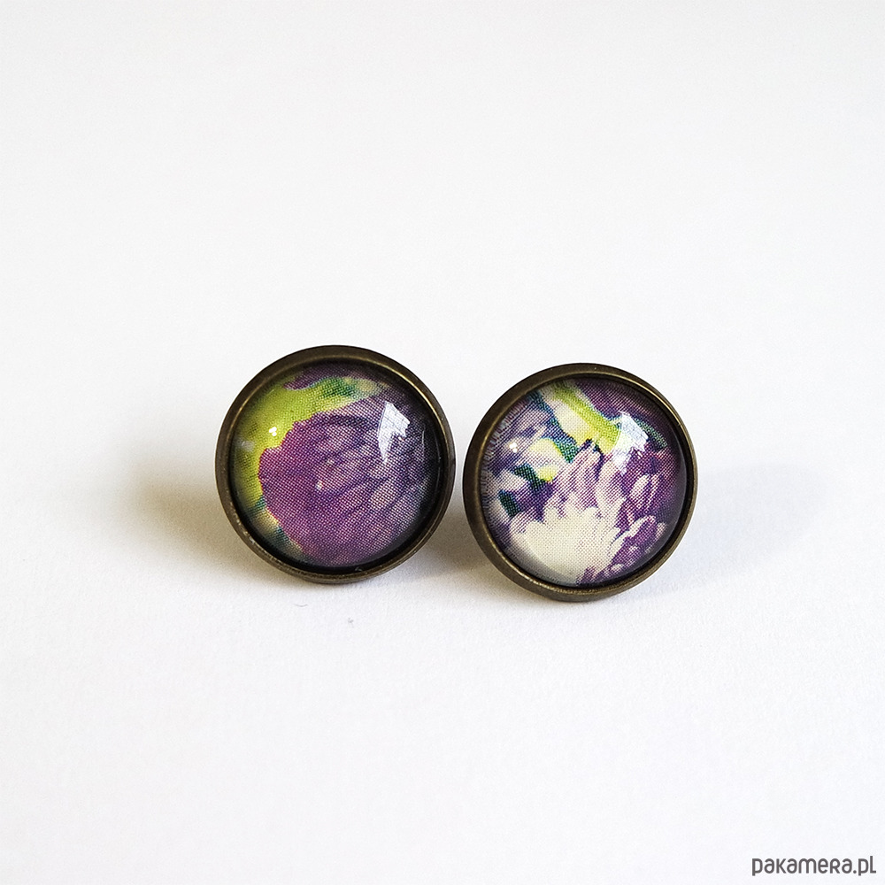 Kolczyki - Fioletowe kwiaty - antyczny brąz