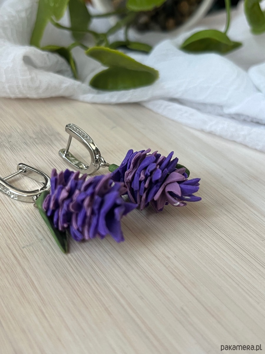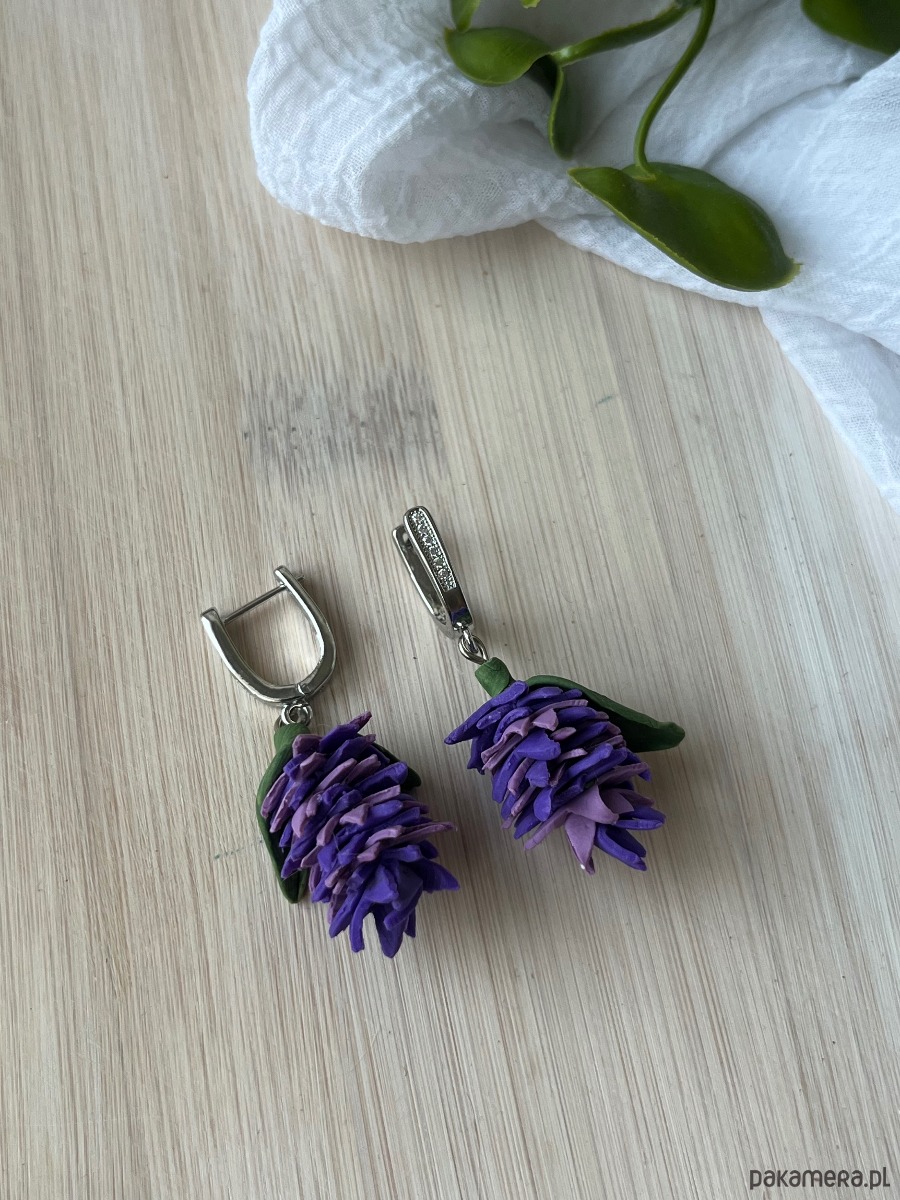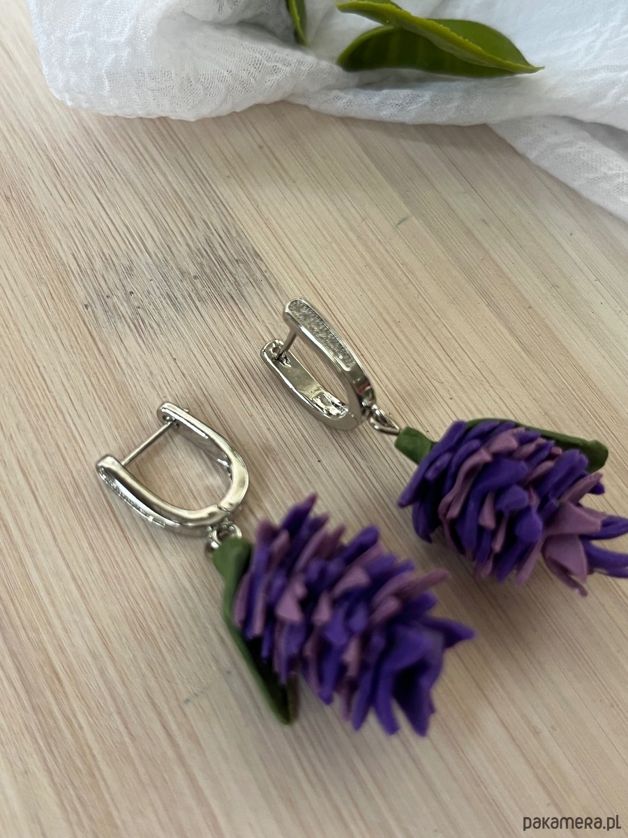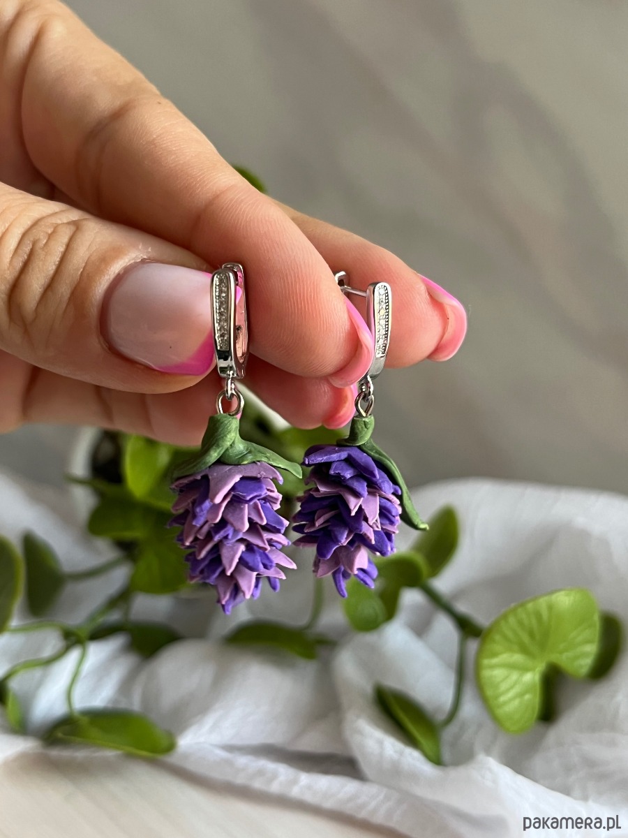 Kolczyki fioletowe sukulenty, biżuterialawenda, realistyczne kwiaty z glinki