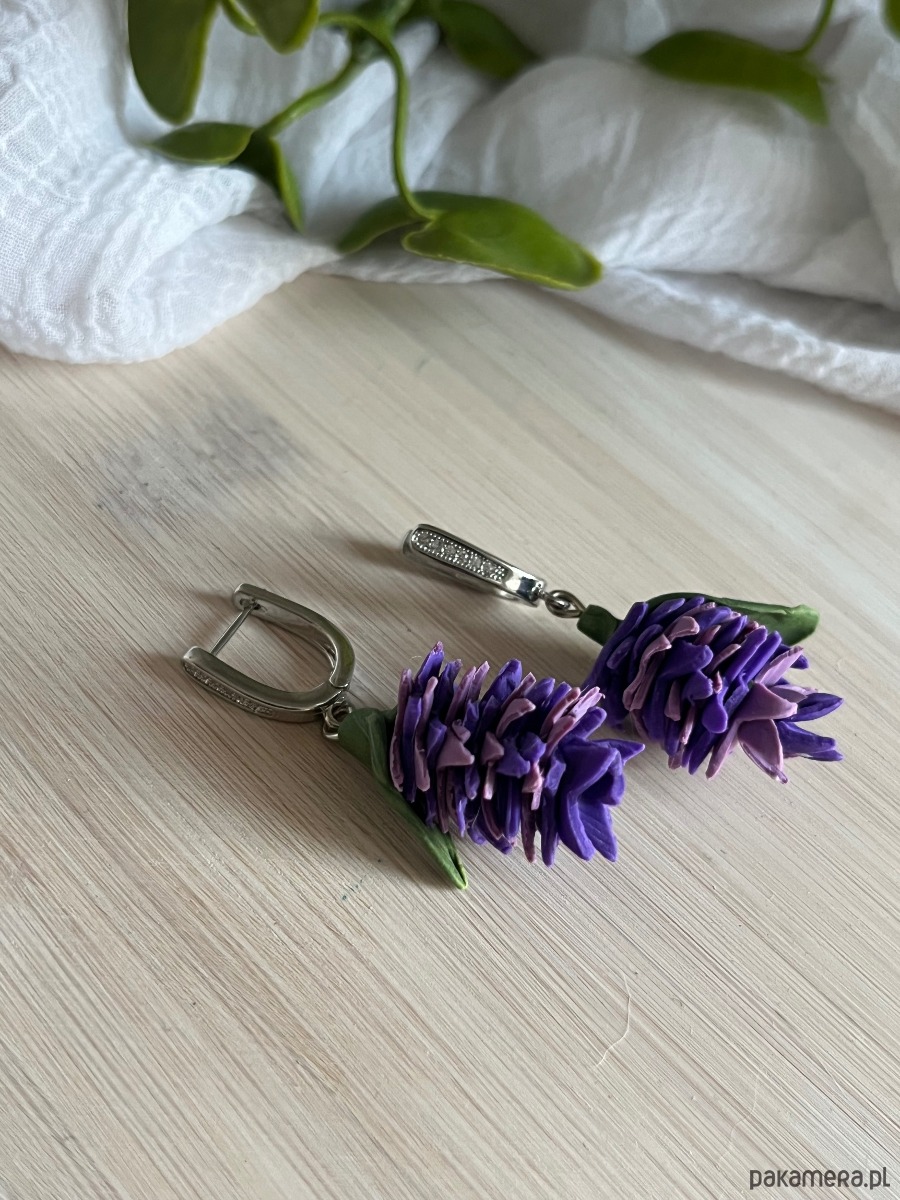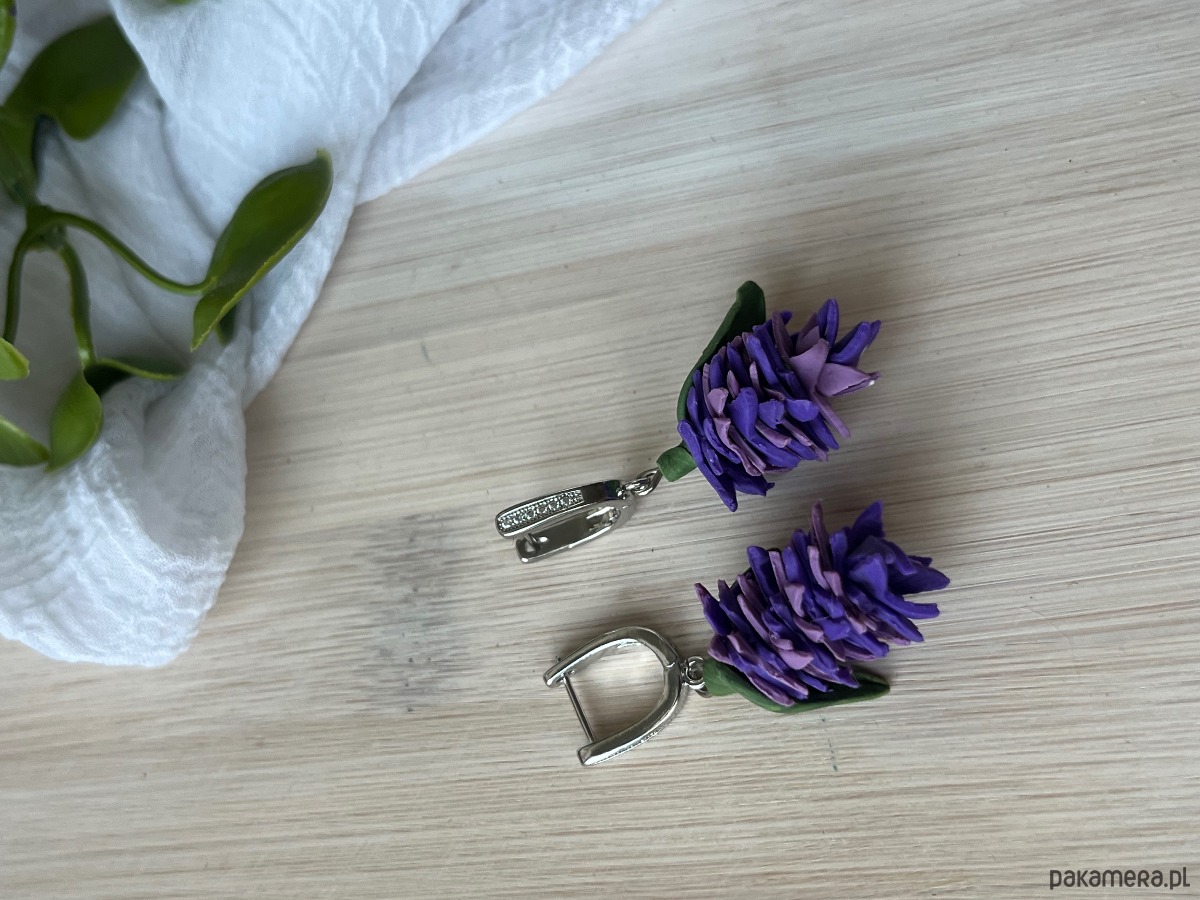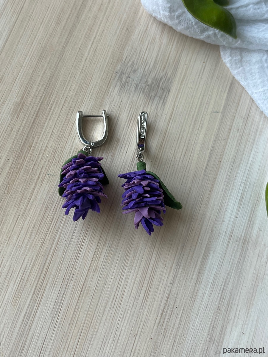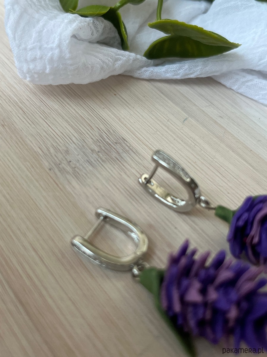 Kolczyki fioletowe sukulenty, biżuterialawenda, realistyczne kwiaty z glinki
