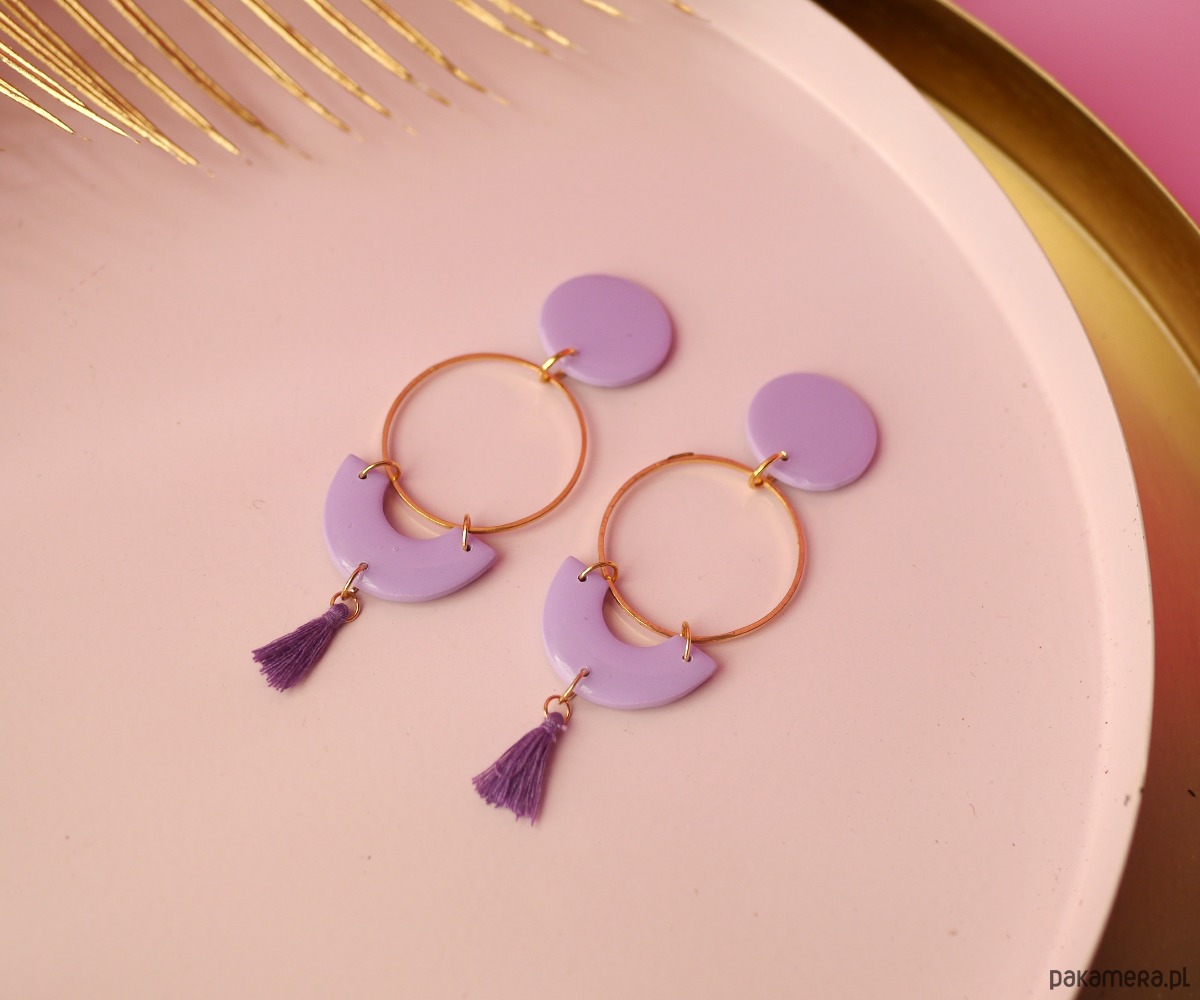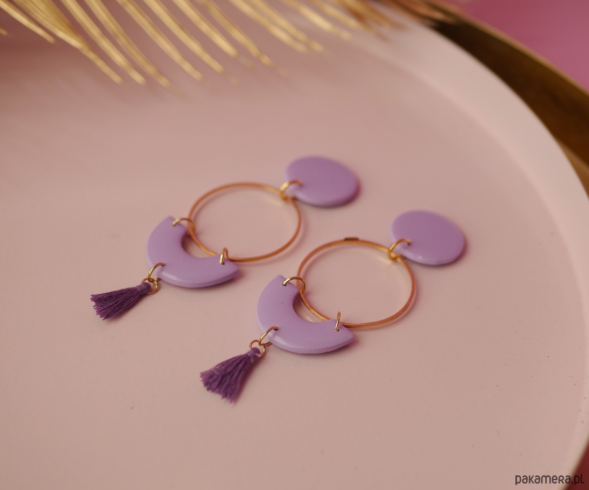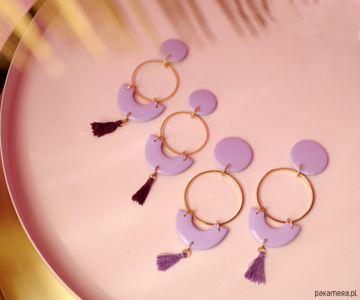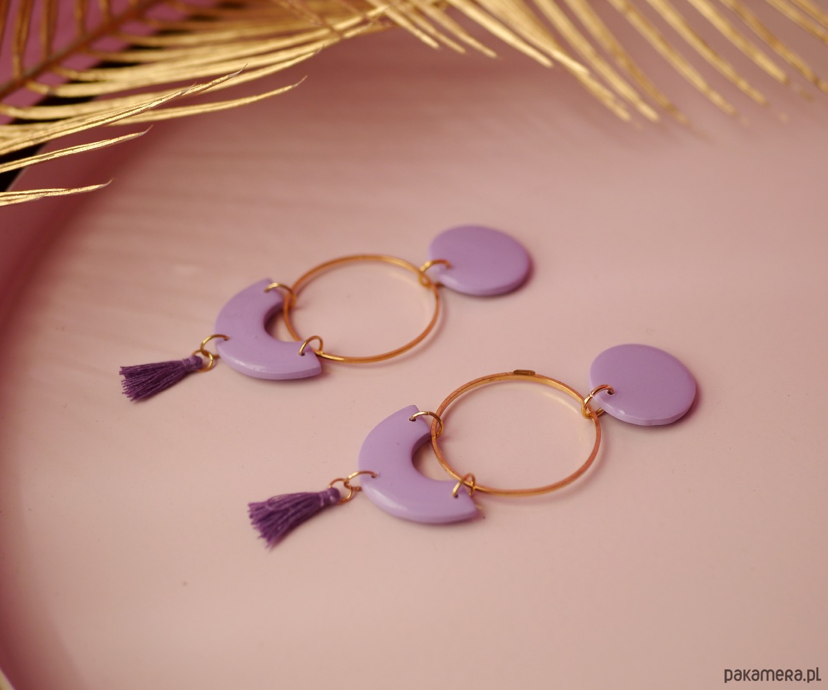 Oryginalne, kolorowe i bardzo ozdobne kolczyki wykonane z glinek polimerowych, żywicy oraz urozmaicone mosiężnymi elementami oraz maleńkimi bawełnianymi frędzelkami.