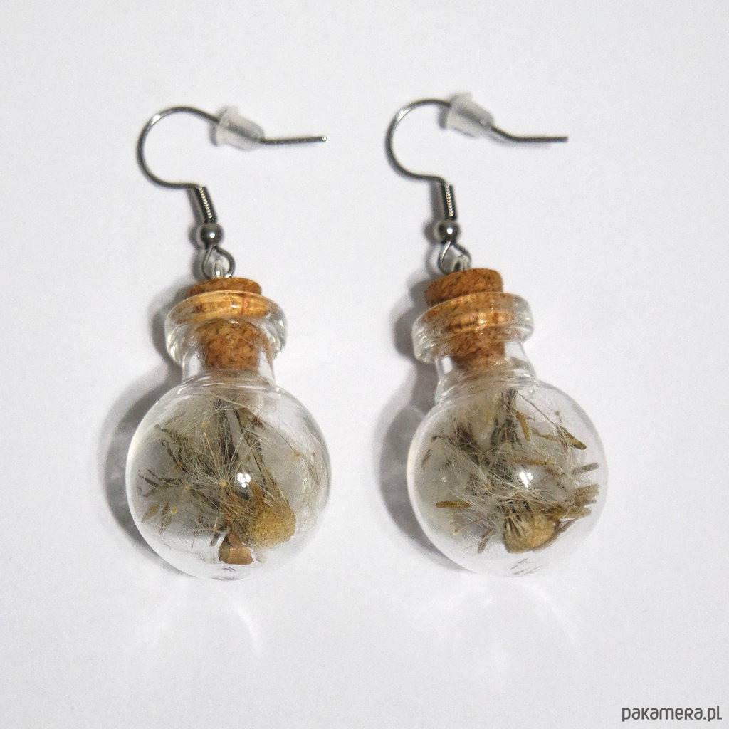 Mała, szklana fiolka, wypełniona prawdziwym dmuchawcem i zamknięta koreczkiem.