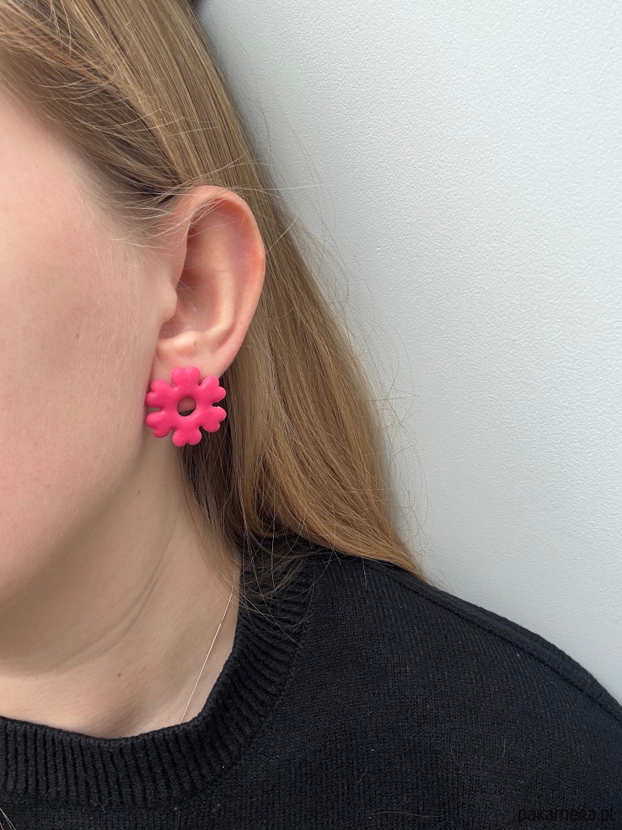 Ręcznie wykonane kolczyki o wysokości 2,5 cm, które są definicją nowoczesnej odwagi i koloru. Bardzo lekkie, a dzięki zastosowaniu sztyftów ze stali chirurgicznej są bezpieczne dla wrażliwych uszu. To idealny wybór dla osób, które nie boją się szalonych połączeń kolorów. Świetnie podkreślają zarówno eleganckie, jak i codzienne stylizacje.