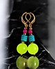 Kolczyki wykonane z jadeitu w soczystym NEONOWYM odcieniu (12mm! ) oraz jadeitu 4mm i turkusowej lawy wulkanicznej oraz przekładek ze złotego hematytu.