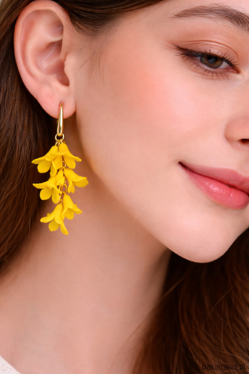 Każdy kwiat został wykonany ręcznie z dbałością o detale, dzięki czemu kolczyki są wyjątkowe i niepowtarzalne. Intensywny żółty kolor pięknie rozświetla twarz i dodaje świeżości.