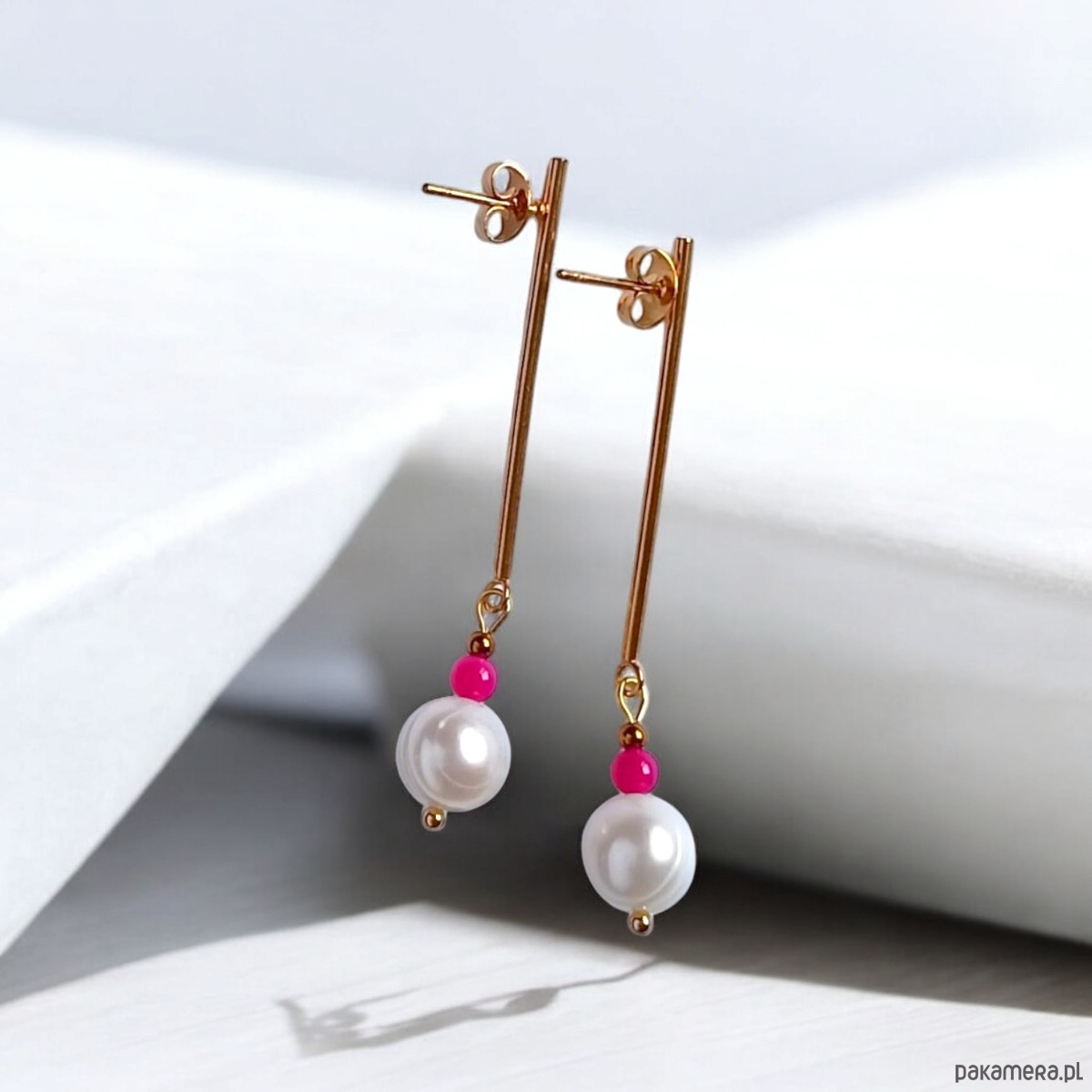 Kolczyki FUCHSIA & PEARL collection: perła i agat : długie sztyfty