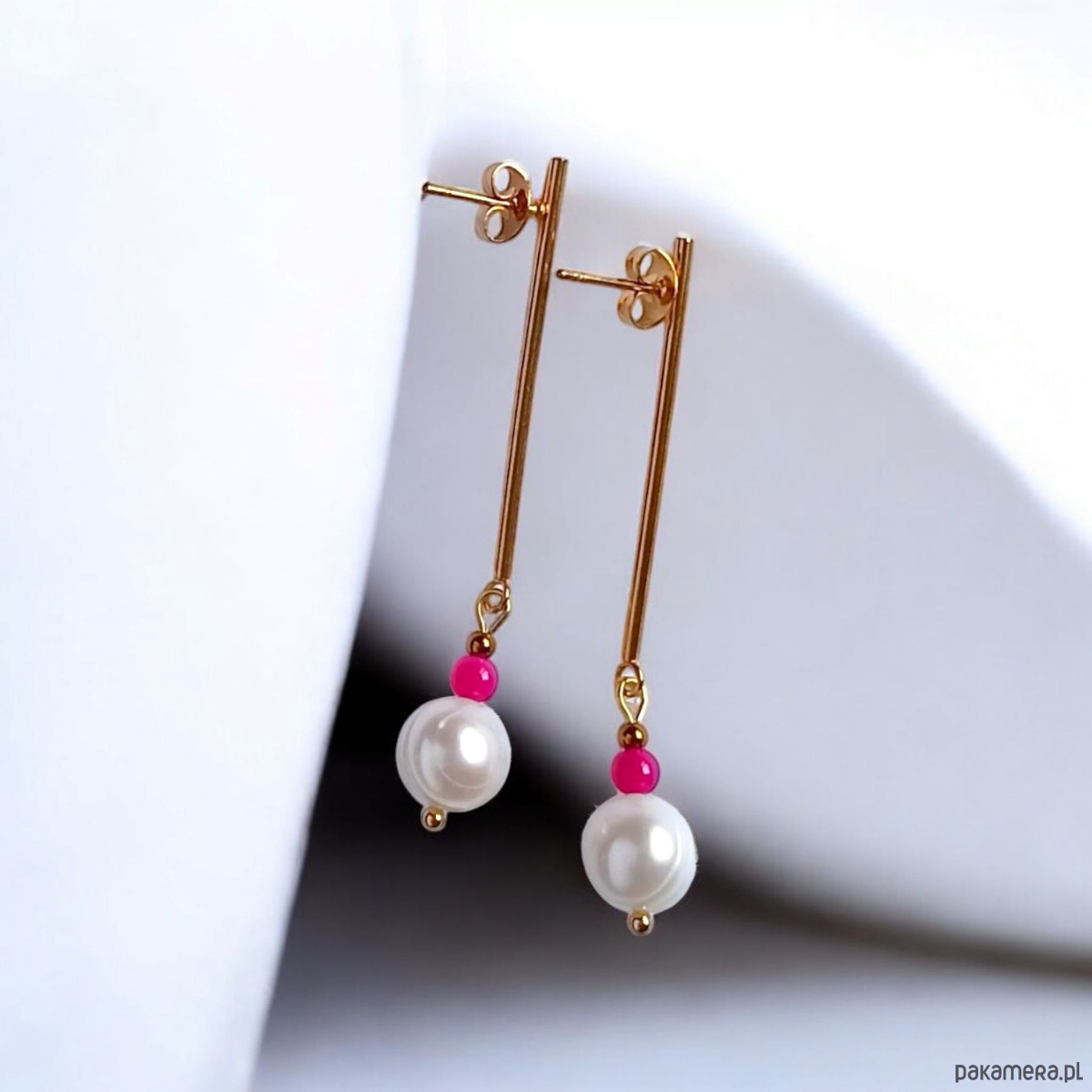Kolczyki FUCHSIA & PEARL collection: perła i agat : długie sztyfty
