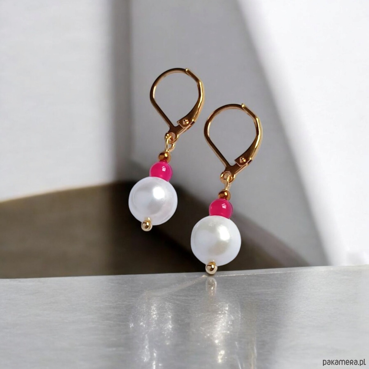 Kolczyki FUCHSIA & PEARL collection: perła i agat : krótkie