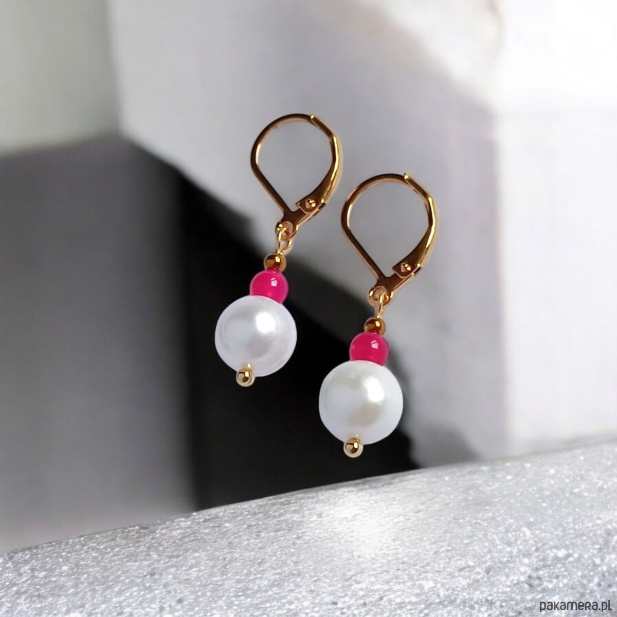 Kolczyki FUCHSIA & PEARL collection: perła i agat : krótkie