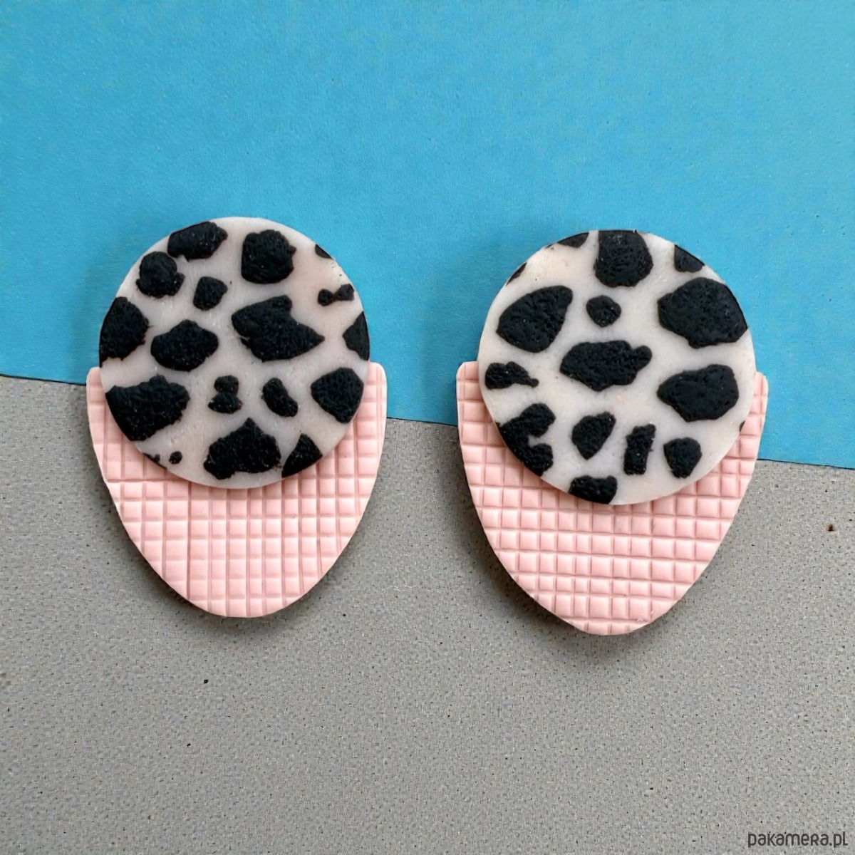 Oryginalne kolczyki wykonane ręcznie z dbałością o szczegóły z profesjonalnej glinki polimerowej, wypalane w piecu i szlifowane w domowej pracowni. Każda para kolczyków jest niepowtarzalna i wyjątkowa. Kolczyki są bardzo lekkie i wygodne, nie obciążają płatka ucha i przyciągają spojrzenia. Zapinane na sztyft ze stali chirurgicznej.