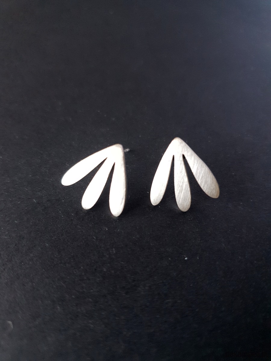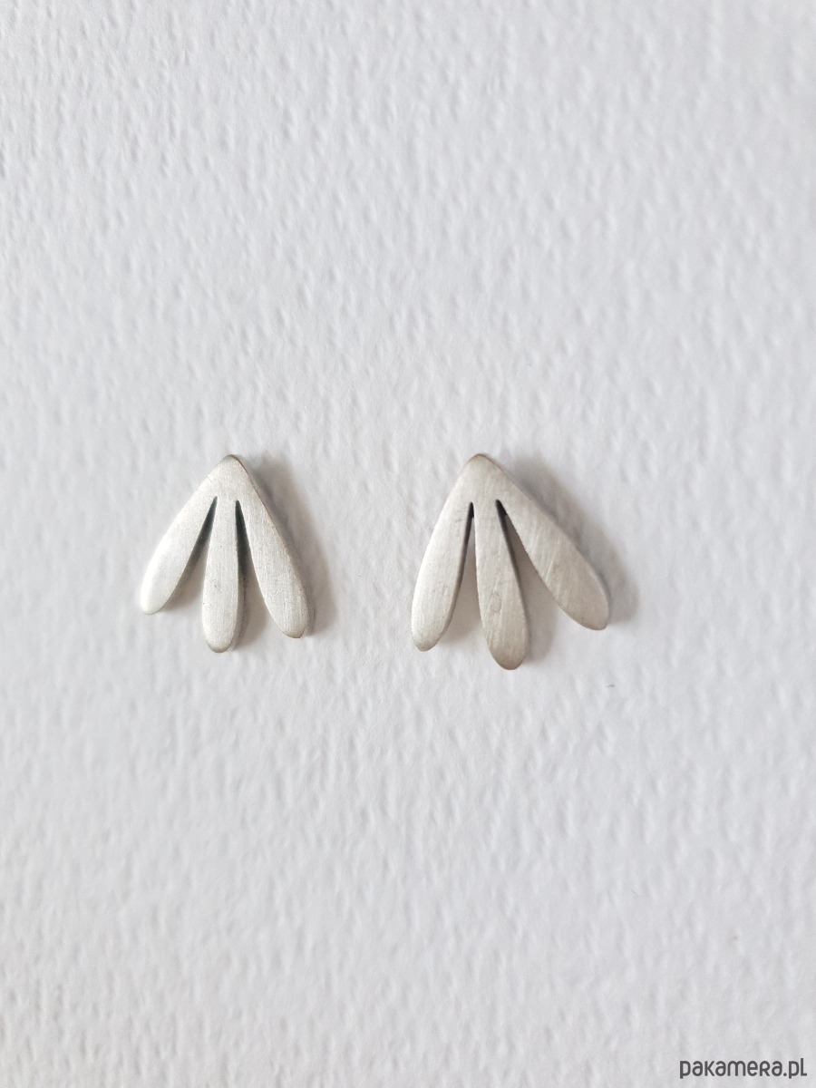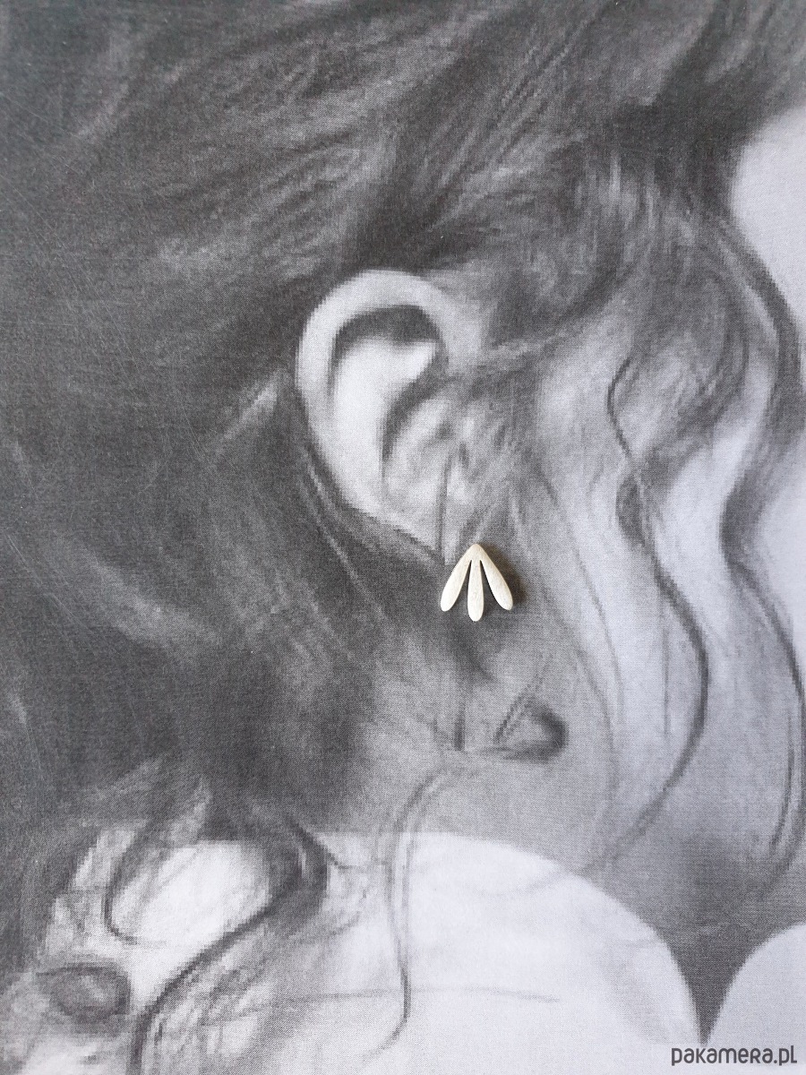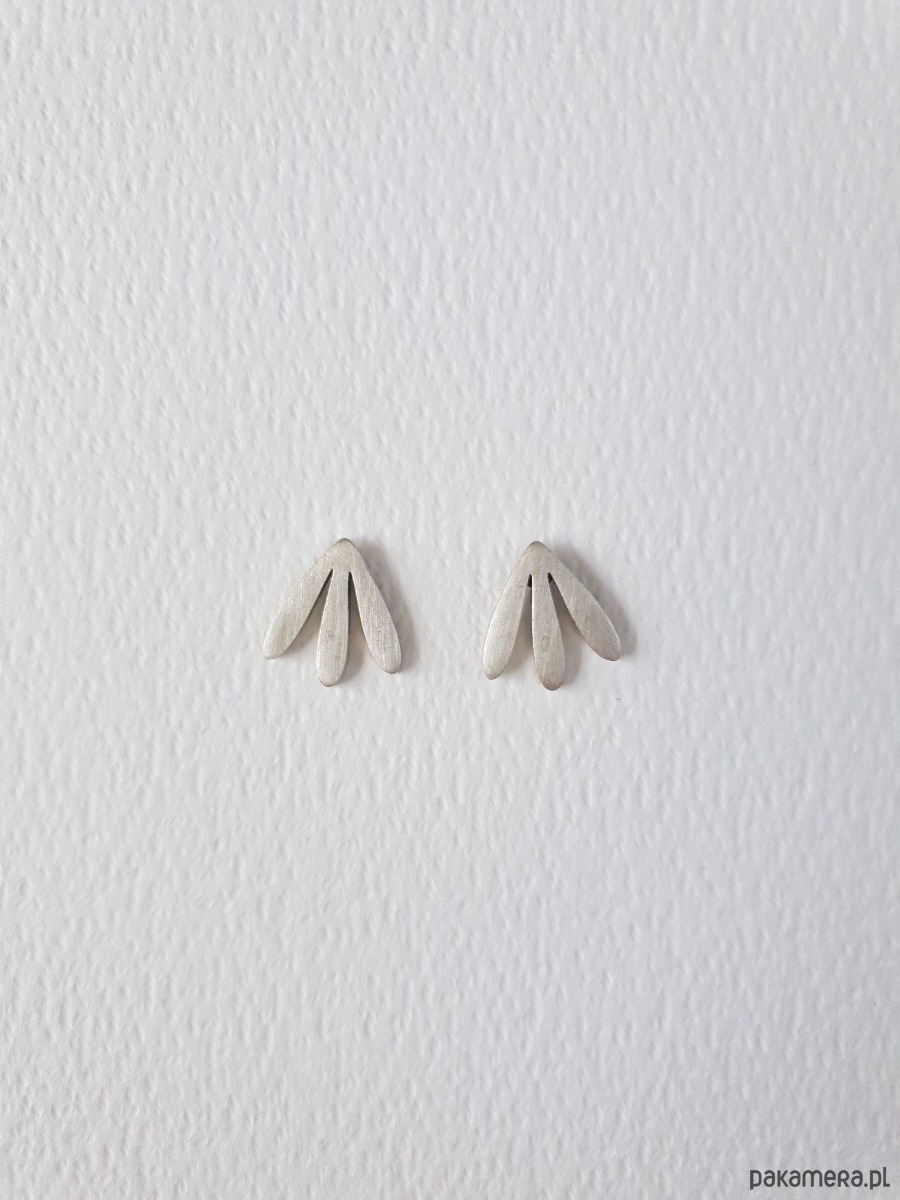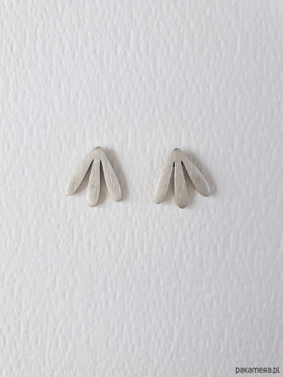 Oryginalne, minimalistyczne kolczyki z kolekcji GARDEN OF EDEN z motywem roślinnym. Tworzone ręcznie z mosiądzu posrebrzanego (ręcznie wycinane, matowione, szczotkowane) Sztyfty ze stali chirurgicznej.