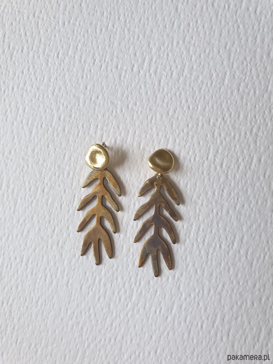 Oryginalne, wiszące kolczyki z kolekcji GARDEN OF EDEN z motywem roślinnym. Tworzone ręcznie z surowego i oksydowanego mosiądzu (ręcznie wycinane, matowione, szczotkowane, oksydowane) Sztyfty ze stali chirurgicznej. Kolczyki są bardzo lekkie.